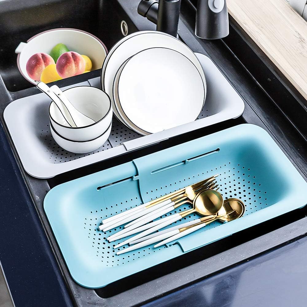 - Retractable Design: Use retractable colander, easy to adjust the size, The colander can be expanded from 14.3 inches to 19.4 inches,free expansion and contraction, flexible use, so it can perfectly fit different size sinks