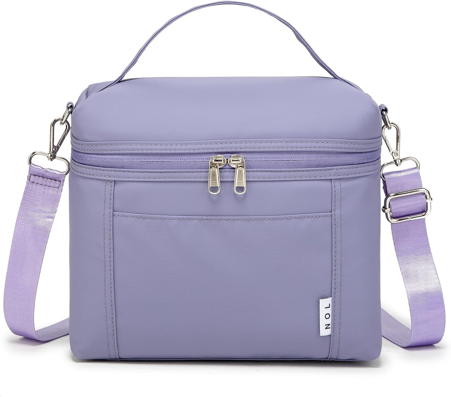 NOL Natural Organic Lifestyle Insulated Lunch Bags for Women Cooler Bag Lightweight Nylon Waterproof Lunch Box For Work (Light purple, Medium(normal))