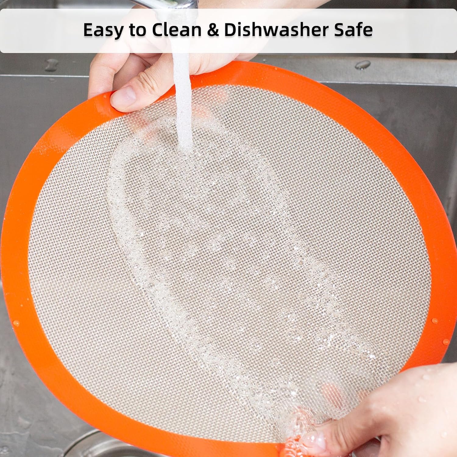 - 🍕【SUPERIOR QUALITY MATERIALS, PREMIUM PERFORMANCE】 This round silicone mat has a diameter of 11.75 inches, which can be used for 12 inch pizza sheet or 12 inch cake pan, springform pan, large air fryer very well. Made of certified food grade liquid silicone & resilient fiberglass. Our premium raw materials and the continuous optimization of manufacturing, contributes to the pizza mat’s superior quality, such as durability and wide temperature resistant range from -40°F to 480°F.