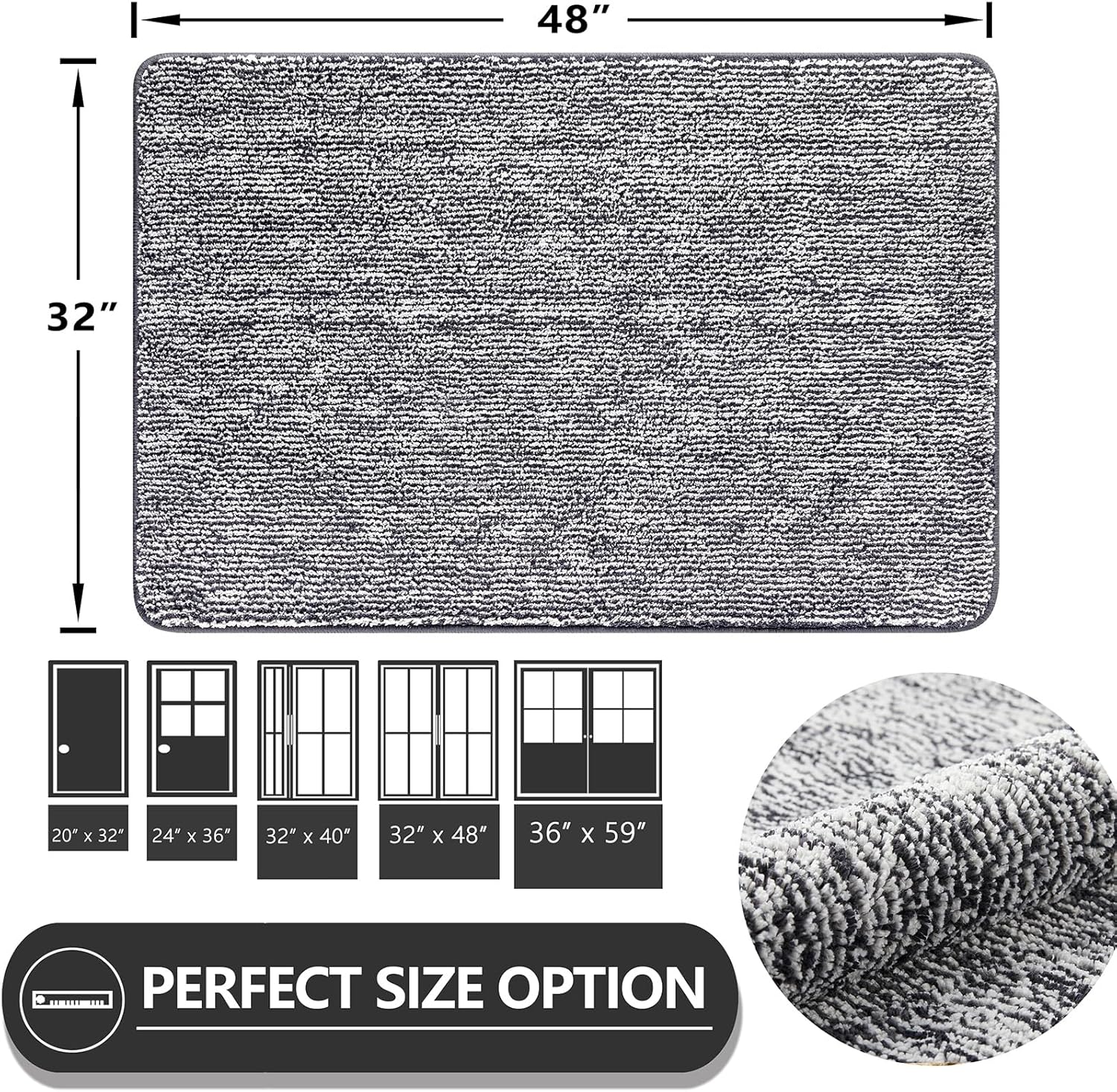 REFETONE Indoor Doormat, Front Door Mat 32"x48" Absorbent Rubber Backing Non Slip Back Door Mats, Washable Low-Profile Inside Floor Mat Door Rugs for Entryway, Resist Dirt Mud Mat for Dogs, Dark Grey