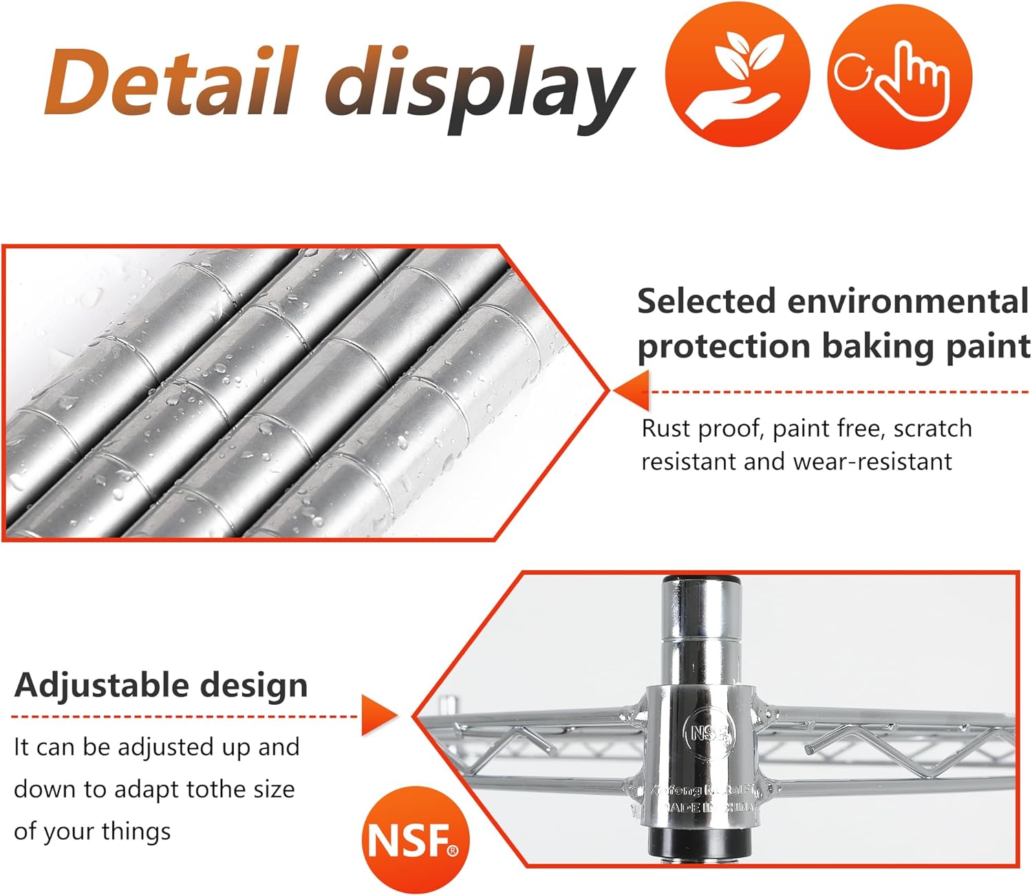 - 2.**Height Adjustable Tiers for Customized Storage:** The adjustable tiers allow you to customize the shelves height to fit items of varying heights. Create versatile storage configurations to maximize your space and accommodate different needs with our wire shelving . Whether it's books, decor, or equipment, these storage shelves can adapt to your storage requirements.