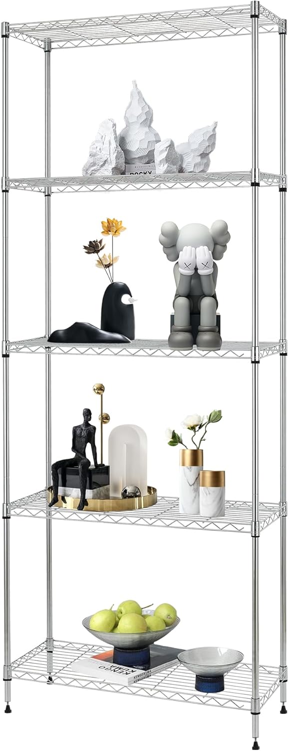FDW Shelves,Wire Shelving Utility Storage Shelves Shelving Unit NSF Certified Height Adjustable Metal 5 Tier Shelves Easy Assembly 24" L x 14" W x 60" H,Chrome