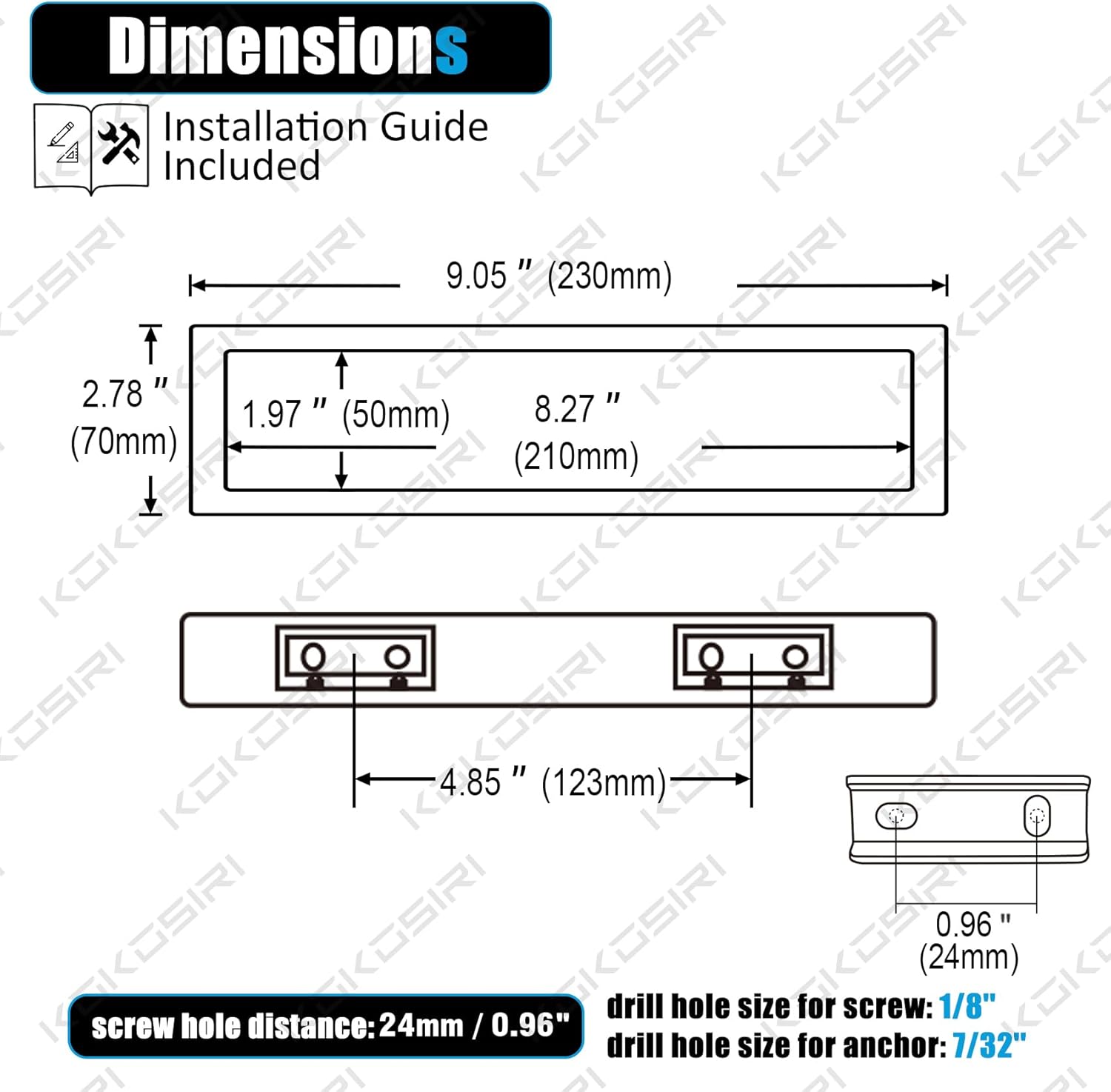 - ◄ Dimension ► Length: 9''(23CM); Width: 2.76''(7CM); Height: 1.18''(3CM) . 4 Colors for Choice: Polished Chrome/ Brushed Nickel/ Matte Black/ Brushed Gold