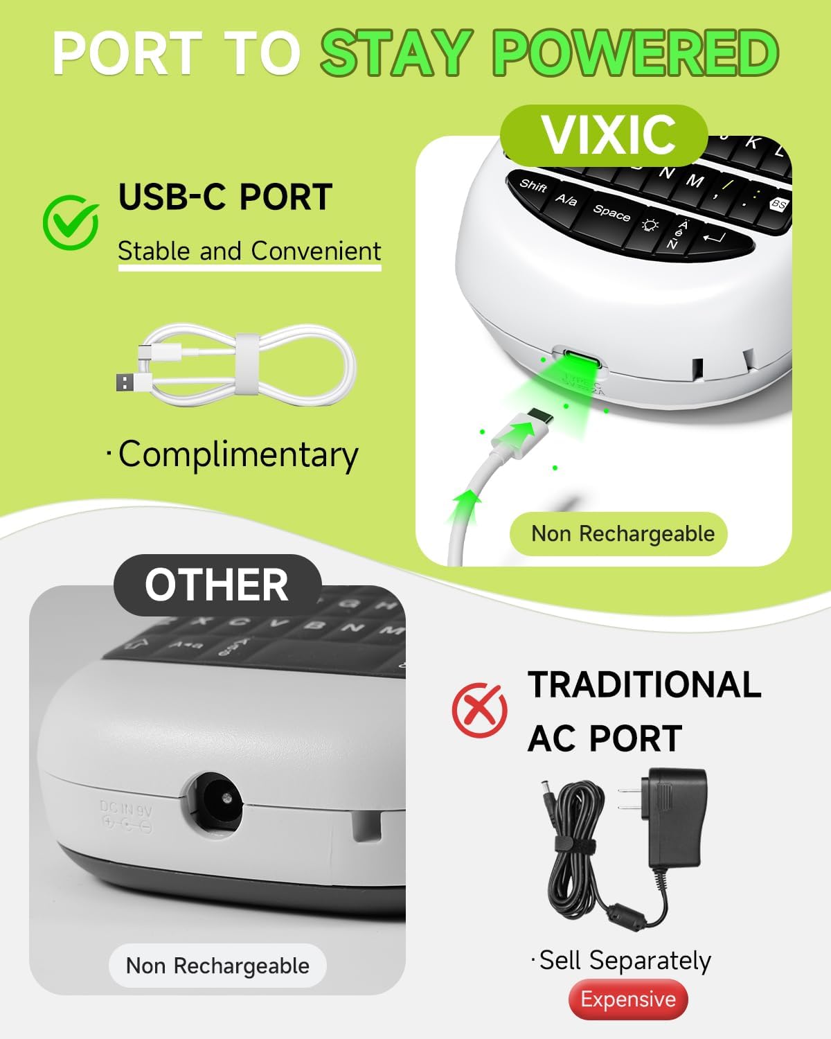 - Labeler Machine with Tape - 2 Power Supply Mode: Vixic H1100 label maker printer work with 6 AAA batteries (Package Not Included), or stay powered with USB C Cable (Included). H1100 label machine can print up to 263ft (80m) label tapes after placed 6 full power batteries