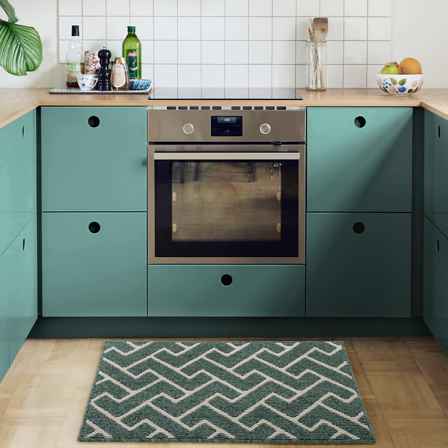 hicorfe Kitchen Rugs and Mats,Kitchen Mats for Floor,24"x35" Non Slip Runner Rug,Absorbent Resist Dirt Comfort Standing Mat Machine Washable for Entryway,Hallway,Front of Sink(Dark Green)