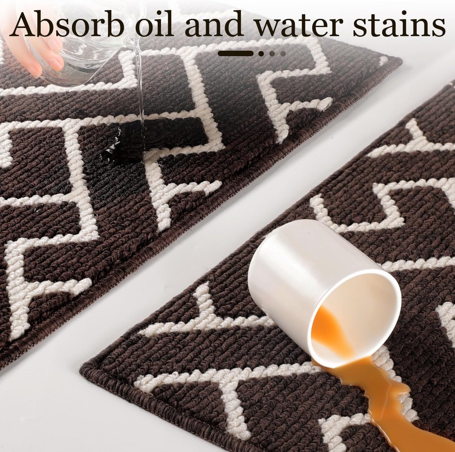 hicorfe Kitchen Rugs and Mats,Kitchen Mats for Floor,24"x35" Non Slip Runner Rug,Absorbent Resist Dirt Comfort Standing Mat Machine Washable for Entryway,Hallway,Front of Sink(Dark Brown)