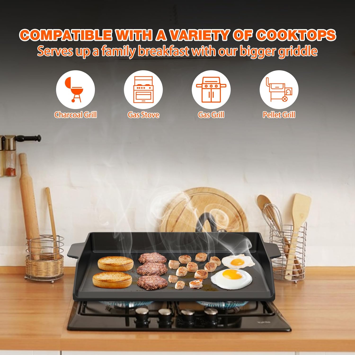 - Versatile Outdoor Cooking: Transform your gas grill or stove into a complete outdoor kitchen with this versatile griddle. Suitable for various settings such as outdoor, camping, patio, backyard, tailgating, and party hosting. Embrace the freedom to cook a wide range of dishes with ease and style.