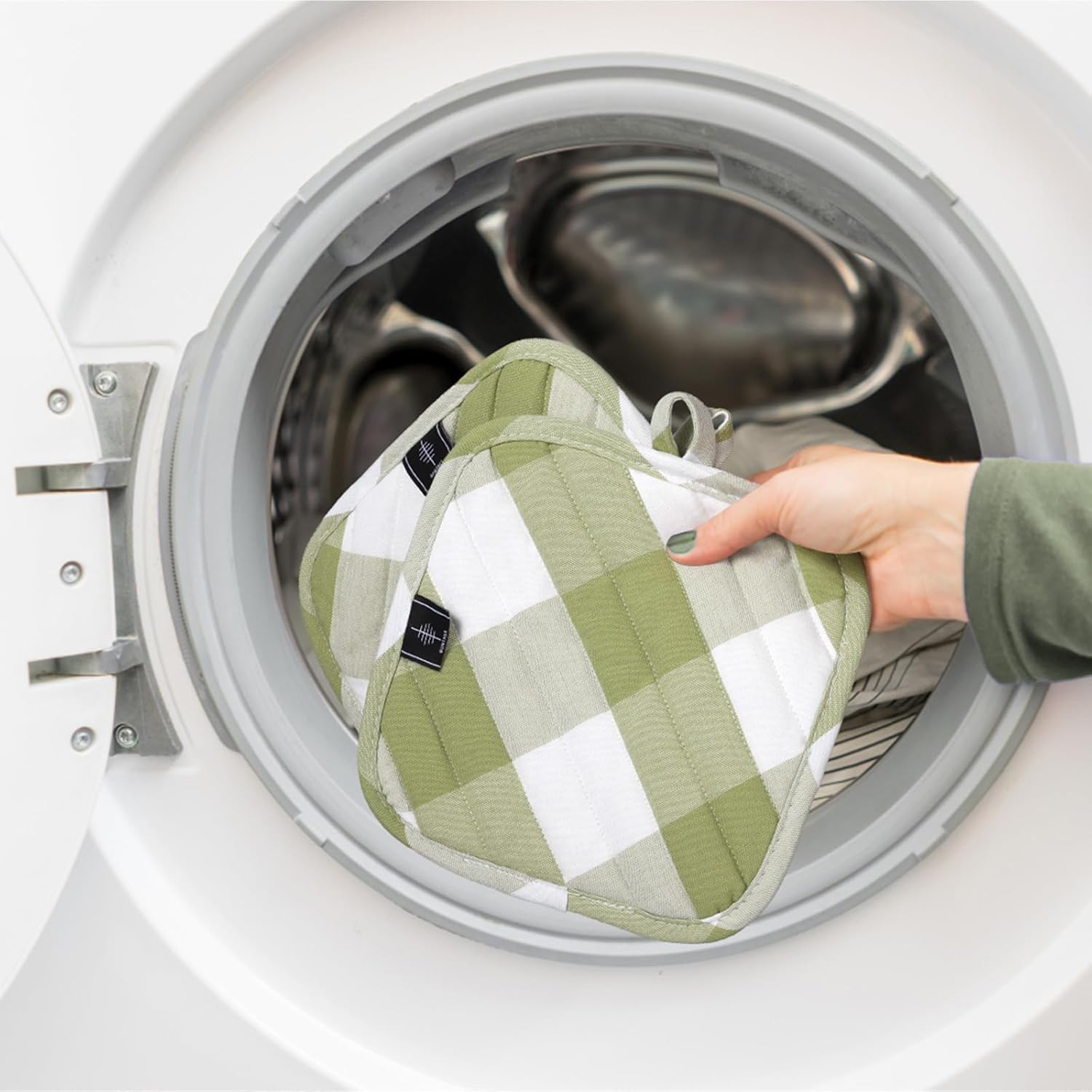 - [Kitchen Decor] These pot holders come in a variety of stylish and classical plaid designs, adding a touch of elegance to your kitchen decor. The loop on each pot holder allows for easy hanging storage, keeping them within reach whenever you need them.