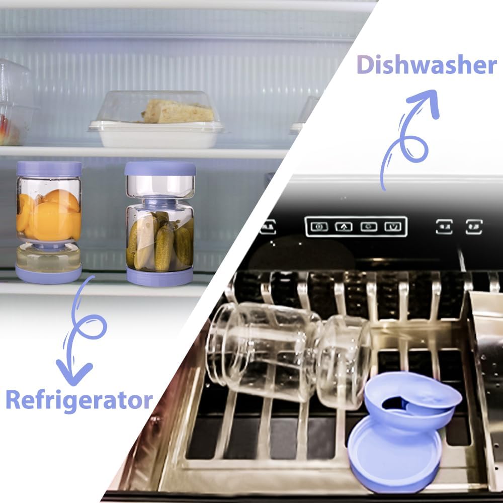 - DURABLE & SEALABLE : Its glass body is made from upgrade lead-free high borosilicate glass(3.3mm thickness) to ensure safety and maximum durability. The pickle jar's lid and bottom is crafted with BPA free PP plastic and silicone, dishwasher safe, refrigerator safe, recyclable and durable. It can also tolerates -20℃-560℃ (-4℉-1040℉) temperature, allowing you to use it for years to come. This is an especially great gift for anyone with creative kitchen displays!