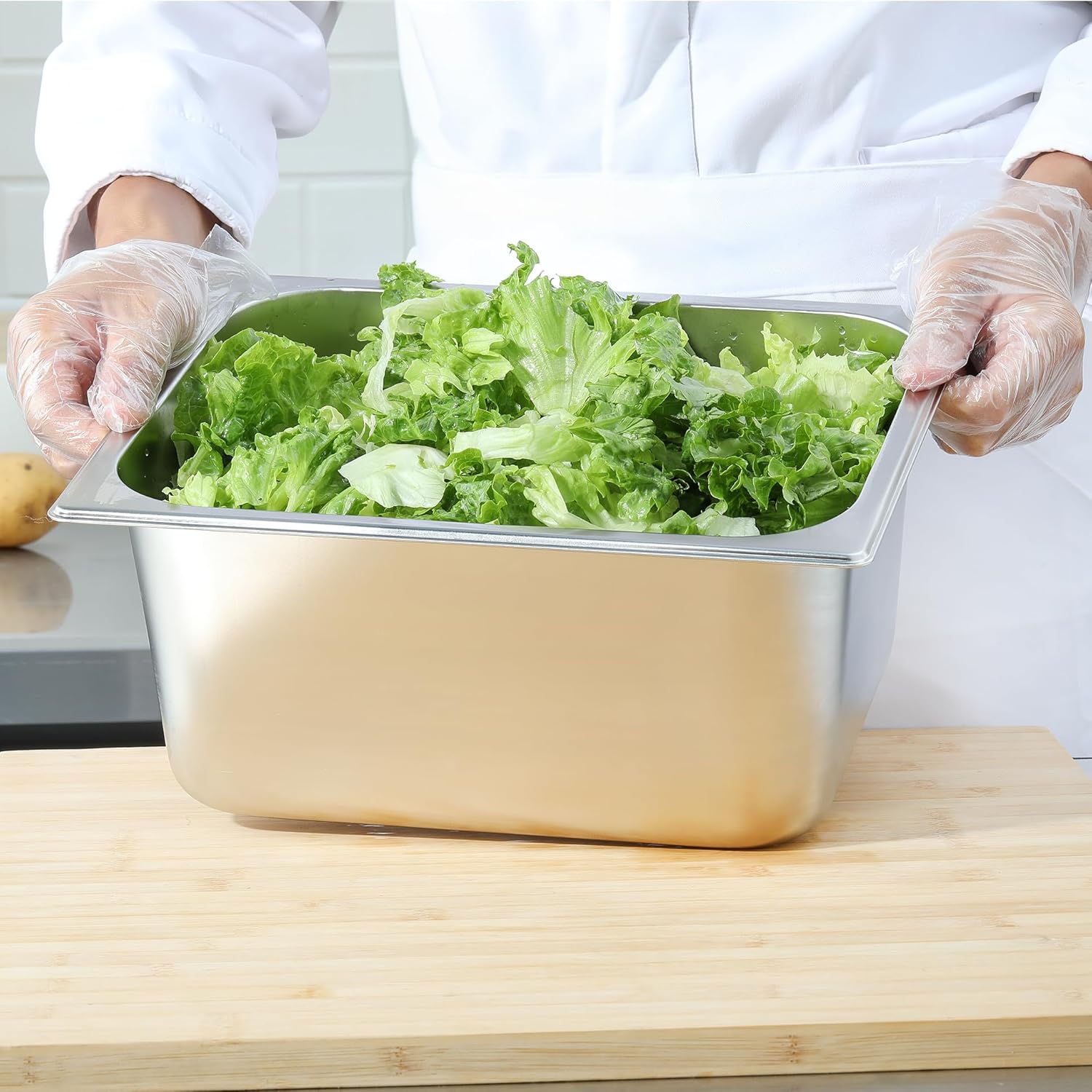 - User-friendly: The edges of the steam table pan are designed in a curved shape to better protect the safety of the users, ensures a comfortable grip. The special treatment of the pan add strange, which is minimizing warping and denting