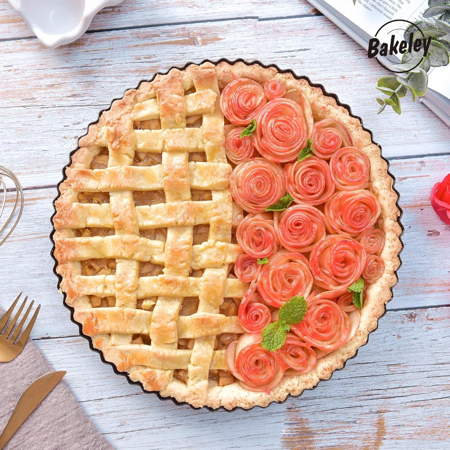 - 【Removable Bottom Design】Bakeley fruit tart pan is designed with loose removable bottom and fluted edges, which aids to increase the surface area and then create a strong crust. Loose base is also easy to mold and cool down your fresh desserts quickly, that can keep your pie or tart a good look