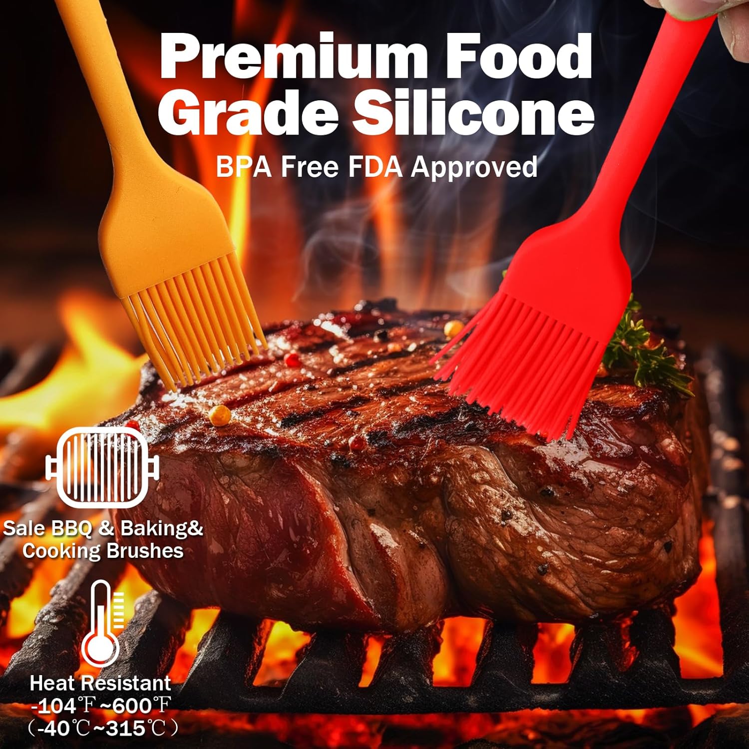 - 【Food Grade Material】This Silicone Basting Brush Set BPA Free,Non-toxic, lead free Odourless. With Stainless Steel core inside non slip handle and more durable! Made of premium Food Grade silicone, unlike other bristle brushes, the silicone bristles will not break or shed in your food, more healthy.
