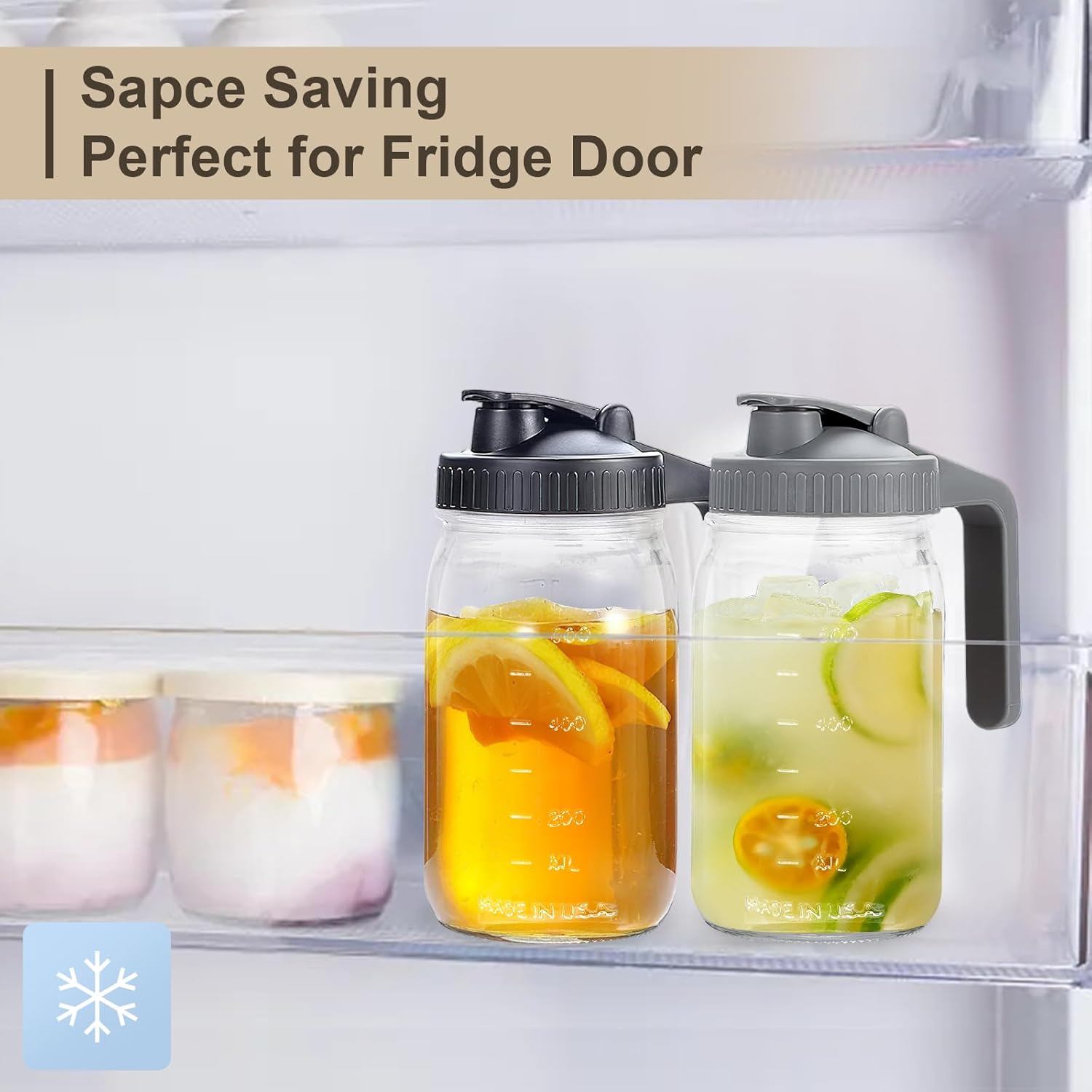 Breast Milk Pitcher Mason Jar - 2Pack Easy Pouring 32oz Airtight Glass Jar with Pour Spout Lid, Classic Wide Mouth Jug Easy to Clean, Ideal for Coffee & Creamer, Iced & Sun Tea, Juices