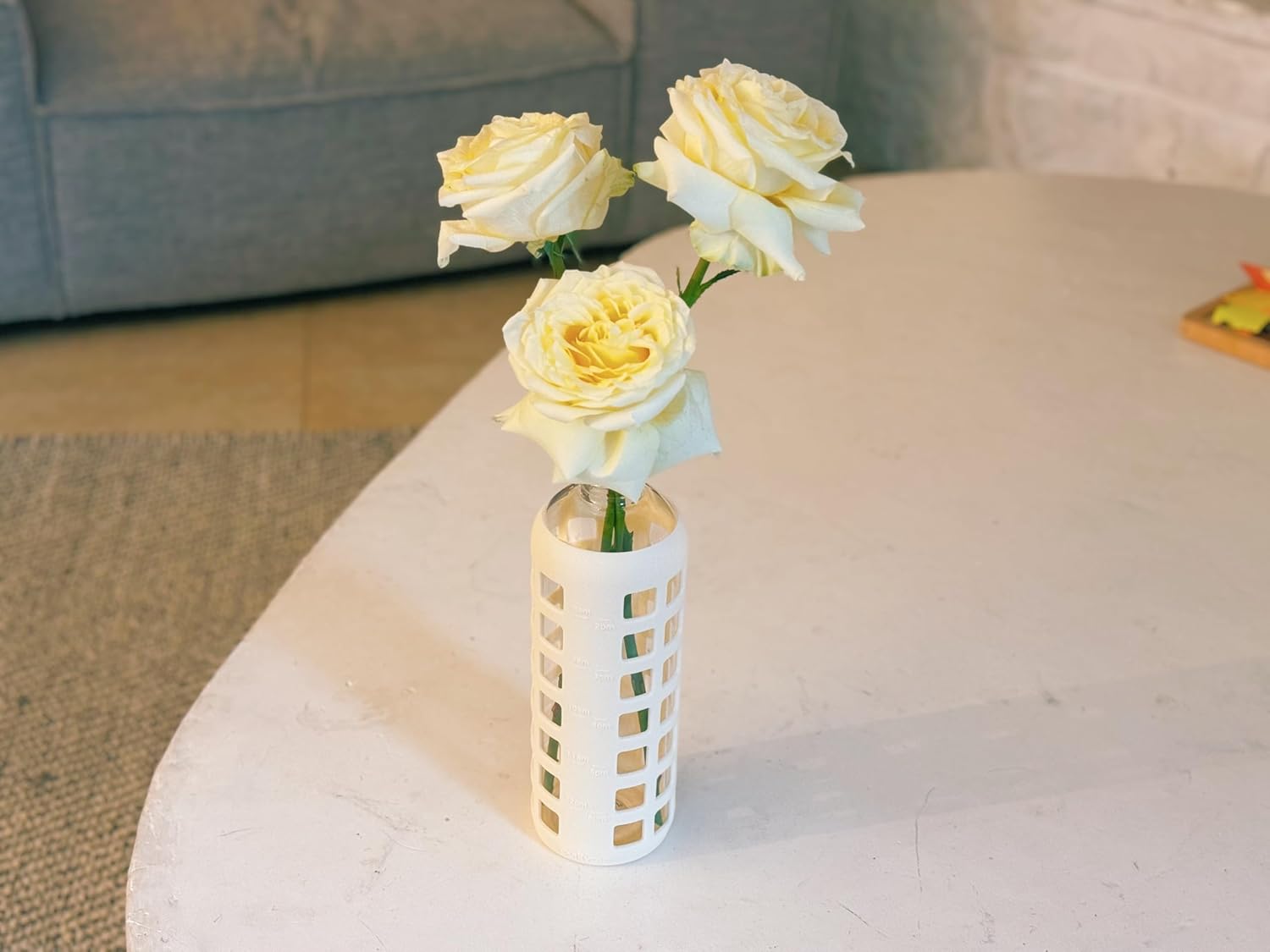 purifyou 40oz / 32oz / 22oz / 12oz Borosilicate Glass Water Bottle with Time & Volume Markers, Silicone Sleeve, Stainless Steel Lid – Reusable Glass Bottle for Water & Juice (12oz Pearled Ivory)