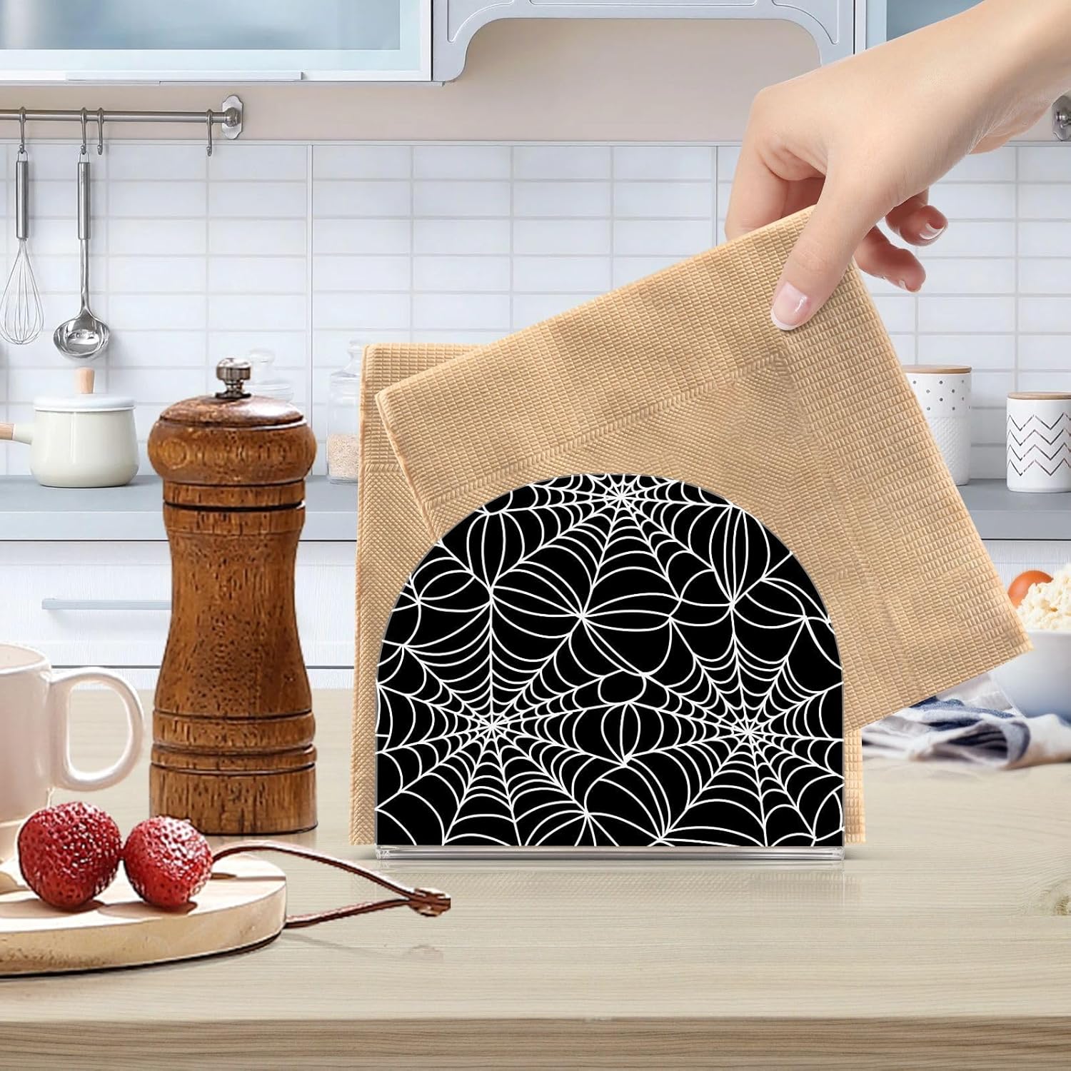 Halloween Spiderweb Napkin Holder for Table Paper Napkins Holder Acrylic Tissue Dispenser Kitchen Dining Room Bathroom Party Car Decor
