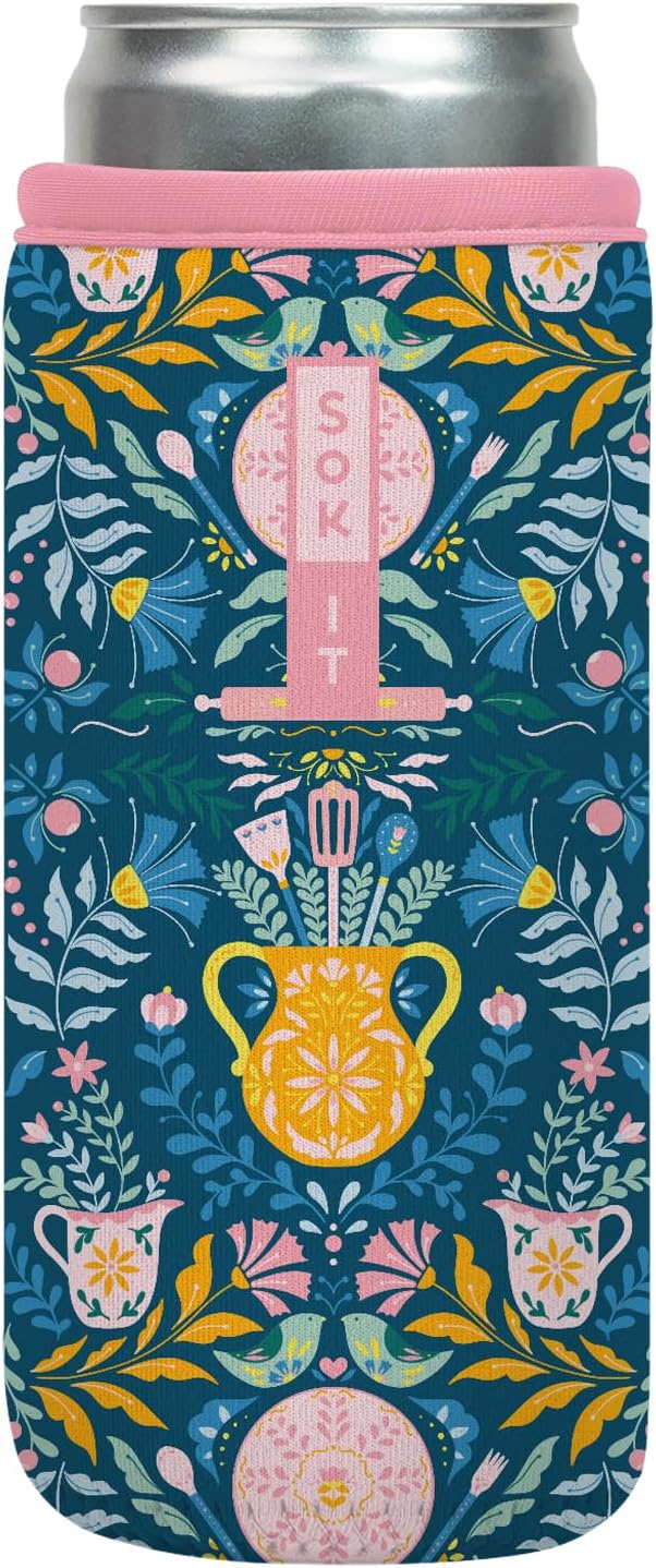 Sok It CanSok Sleeve for Beer & Soda Insulated Neoprene Cover (Wild-Flour, 12oz Slim Can Sleeve)