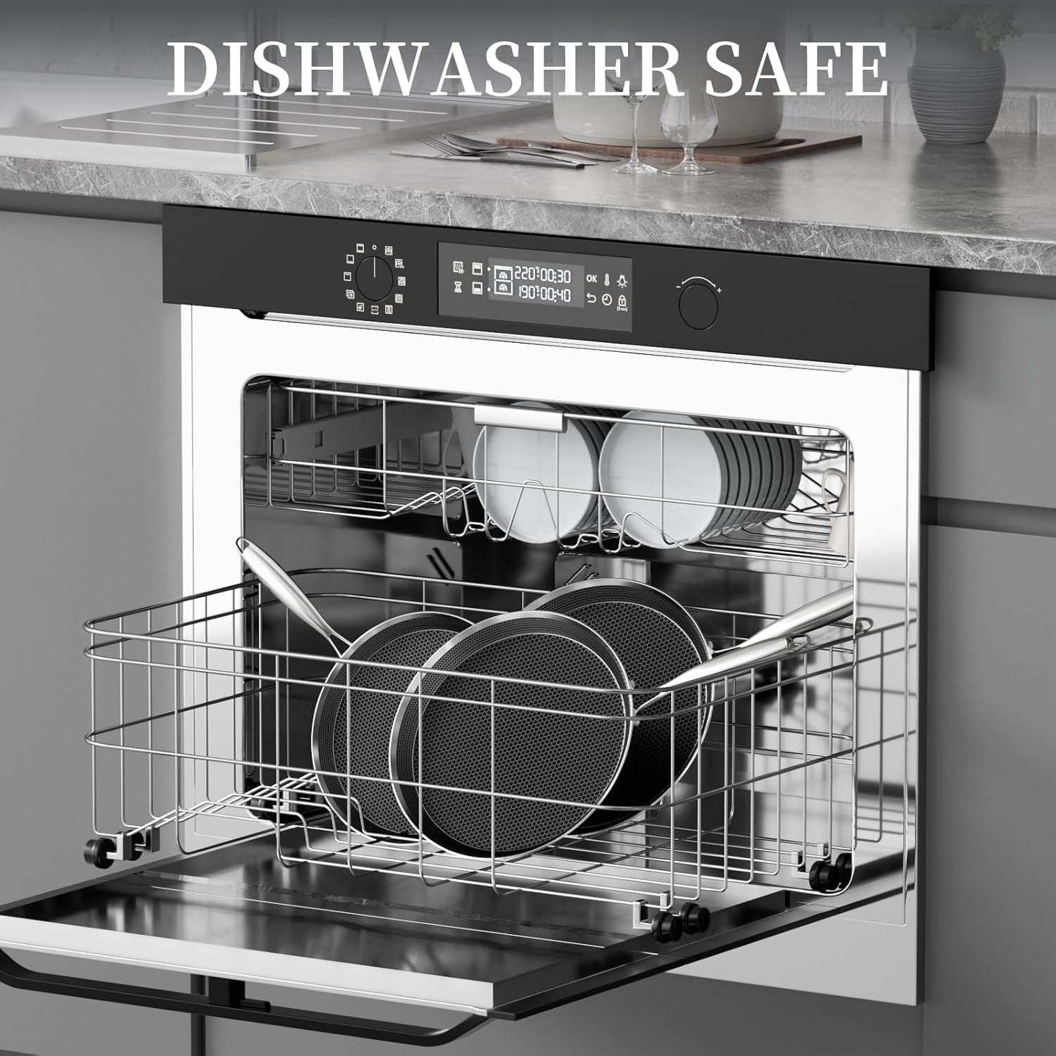 - 【NON-STICK & EASY TO CLEAN】Stainless steel pancake pan combines honeycomb protrusion technology with a full-coverage non-stick coating that excels in non-stick cooking and cleaning. Food won't stick to the bottom of the pan while cooking and is easy to clean after use.