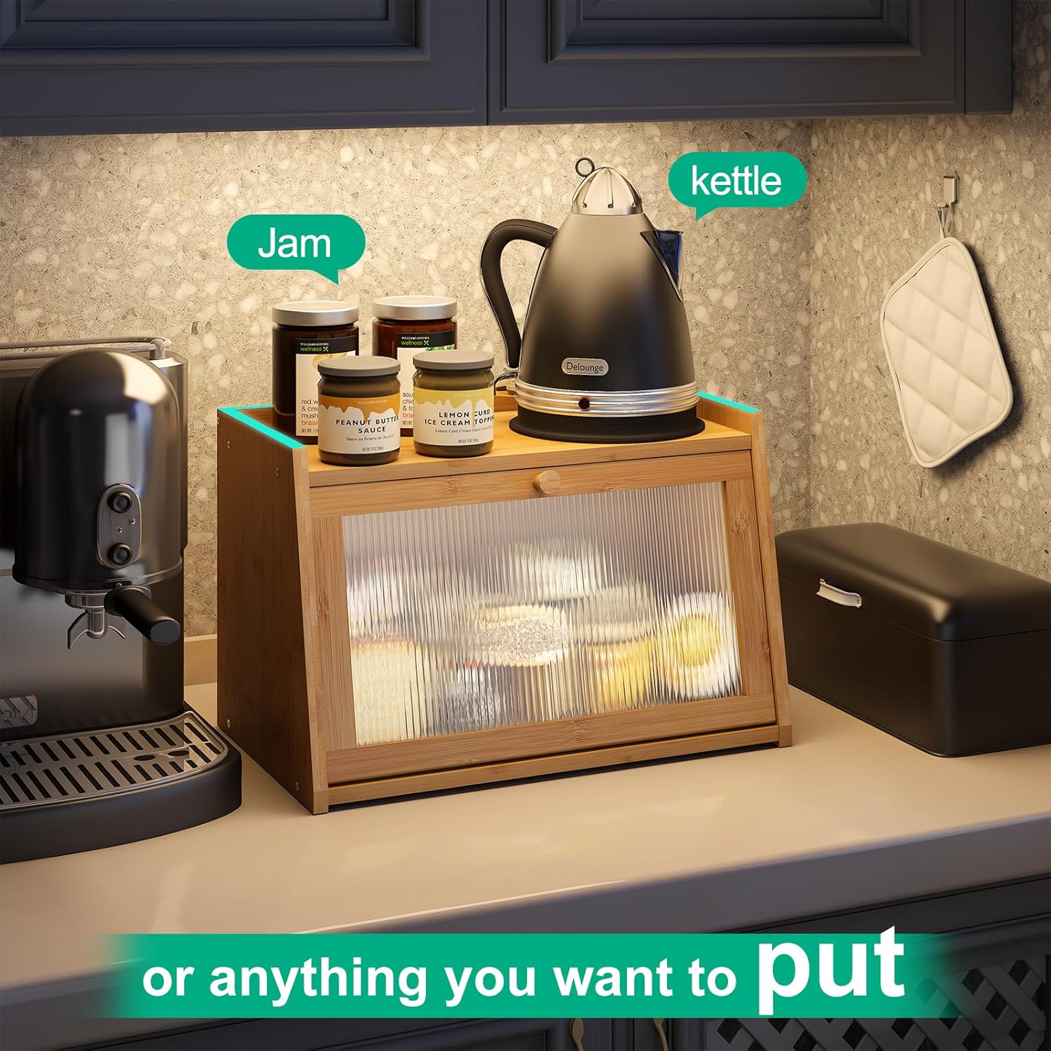 - [Flat Top Design] Super load-bearing capacity, any kitchen items you want can be placed on the bread box.