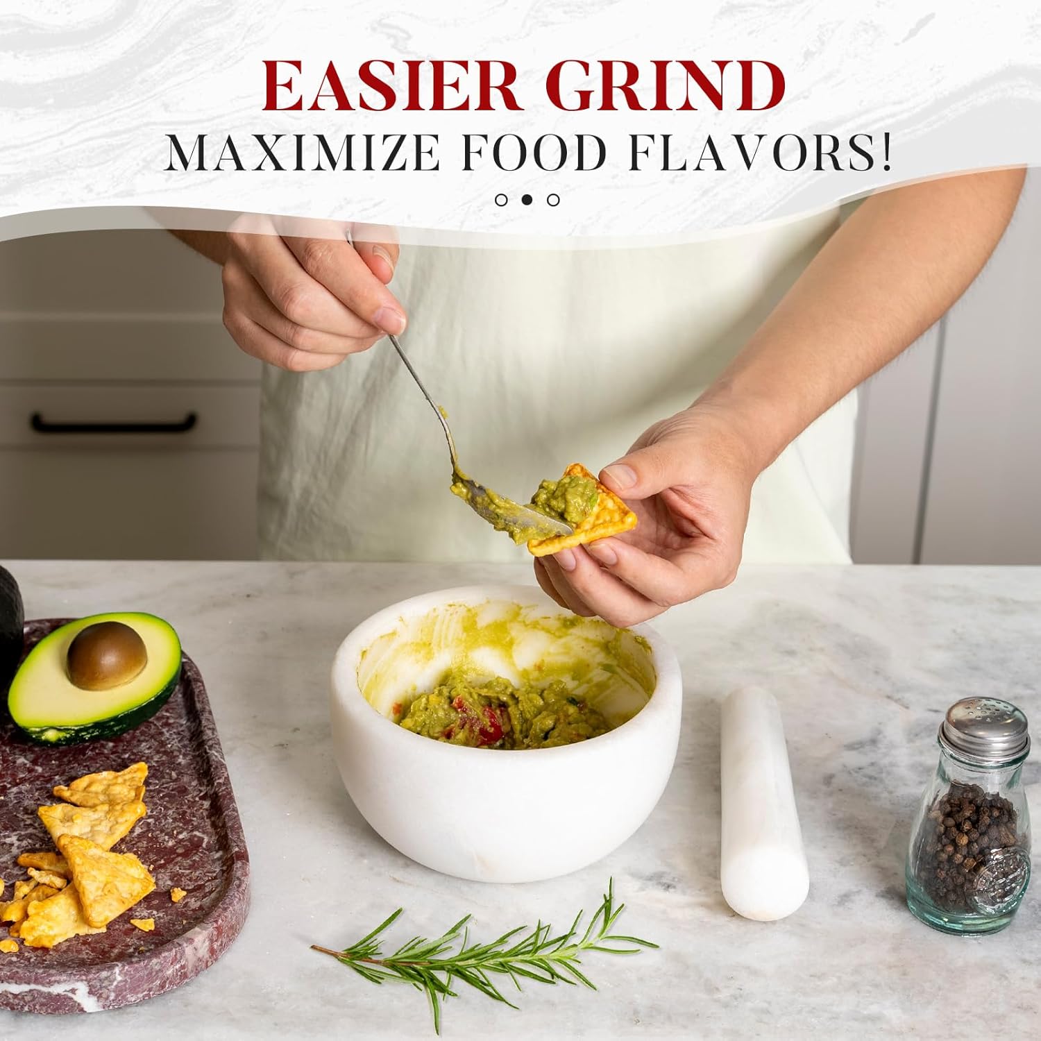 - Widely Use: The Mortar and Pestle set can be used for grinding dry ingredients, spices... Also perfect for guacamole and a great option for grinding sauces, fruit salad, pills, nuts etc. Meeting all your grinding needs