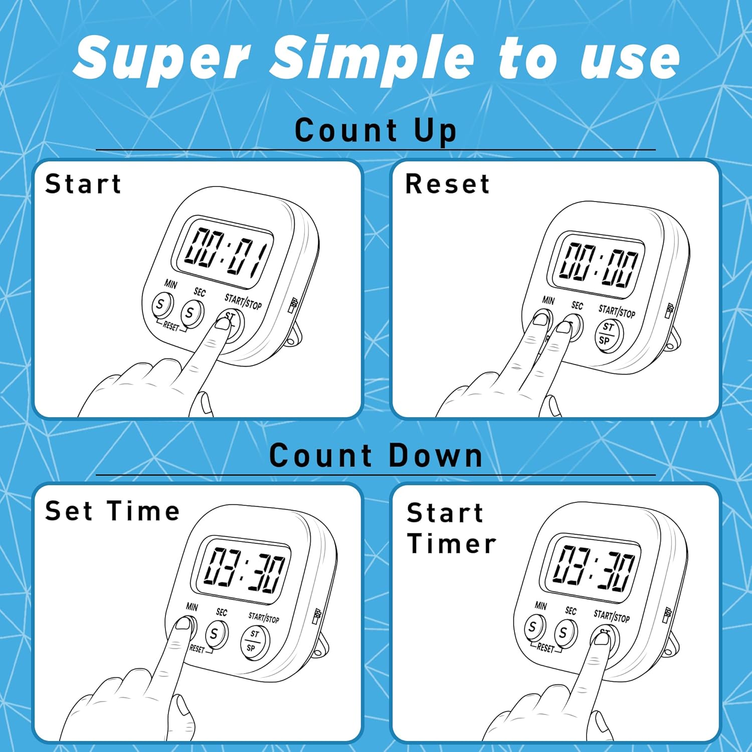 - Enhanced Visibility: Large LCD screen with backlight for easy reading at night. Versatile and functional timer with a user-friendly interface for efficient time management.