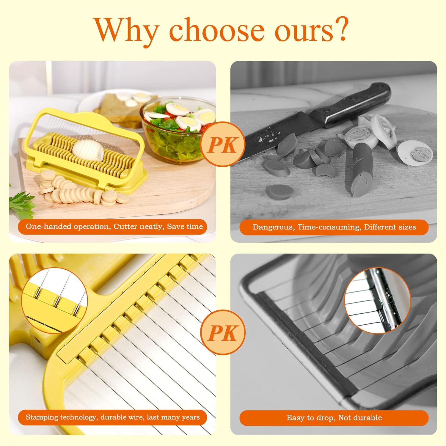 - Multifunctional Slicer: Perfect for slice Egg, Skin-less hotdogs, Banana, Strawberries, Long dough, Kiwis, Butter, and Any soft Fruit.