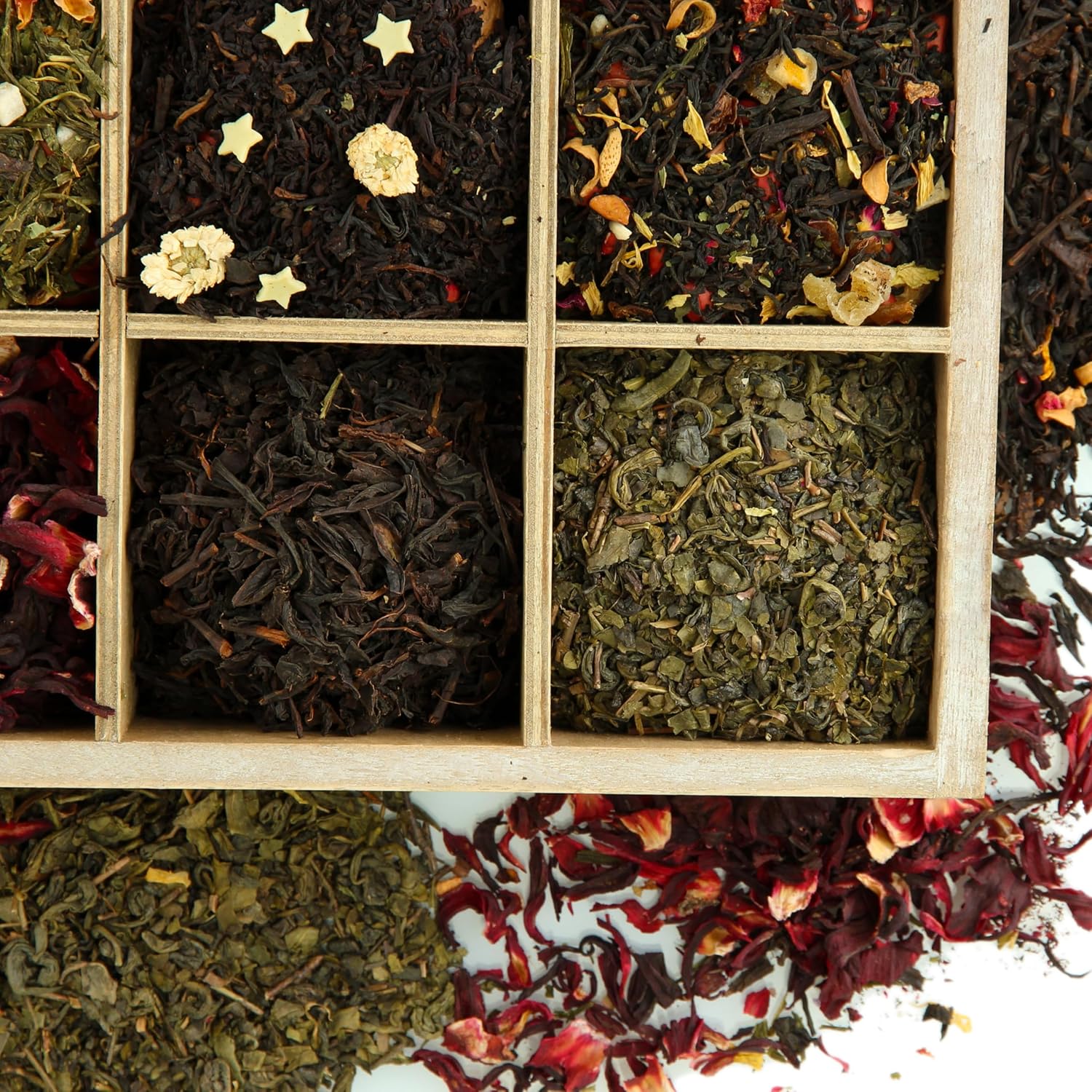- Versatile and Adjustable Storage Box - You can store other items in the tea chest, like spices, condiments, or any knick knack. The wooden dividers can be moved and adjusted to fit any item. We are a small woman and family owned businness and we give 1% of profits back to USA based charities.