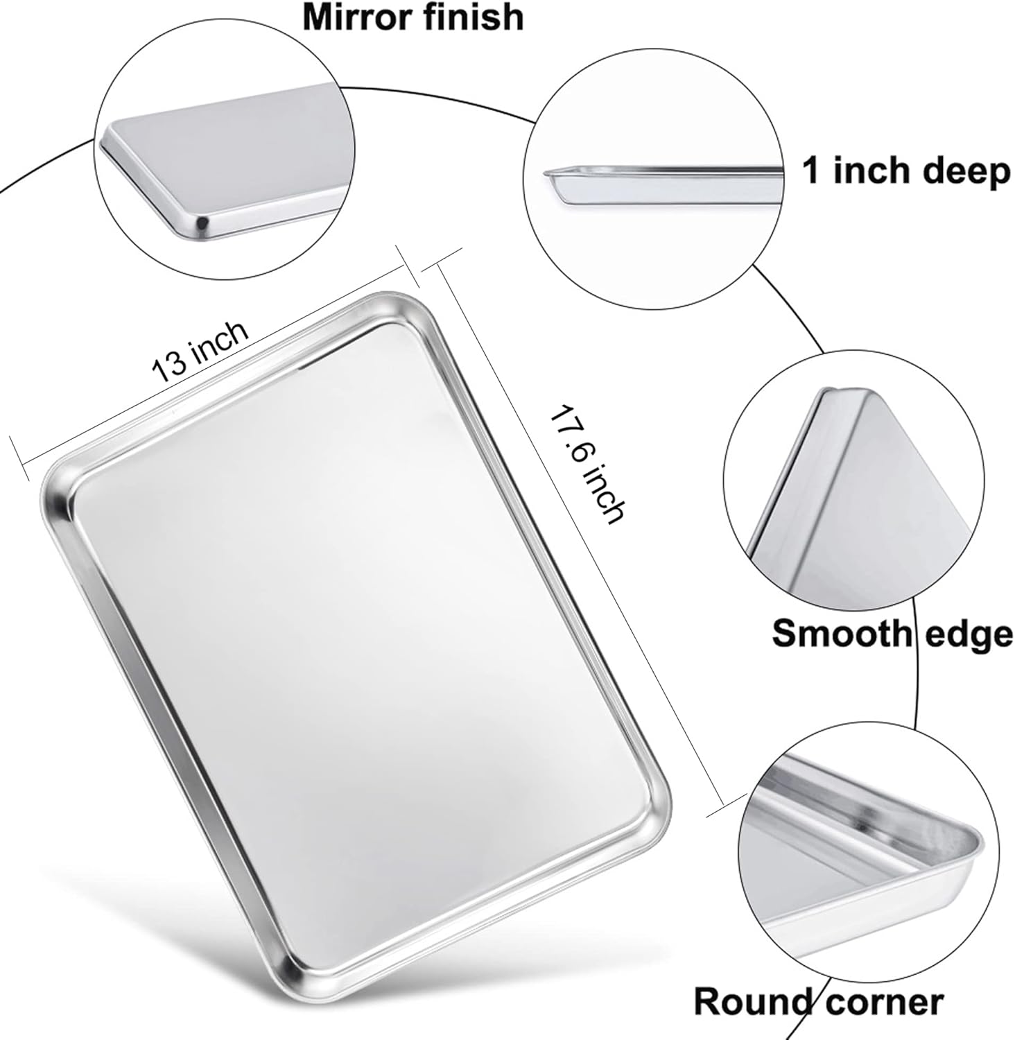 - Healthy & Heavy Duty: TeamFar baking sheets with racks are made of pure stainless steel, Without any toxic coating and won’t leach harmful substances into your food, Rust and corrosion resistance, Healthy for daily using, Constructed with heavy gauge steel, Sturdy for lasting a long term
