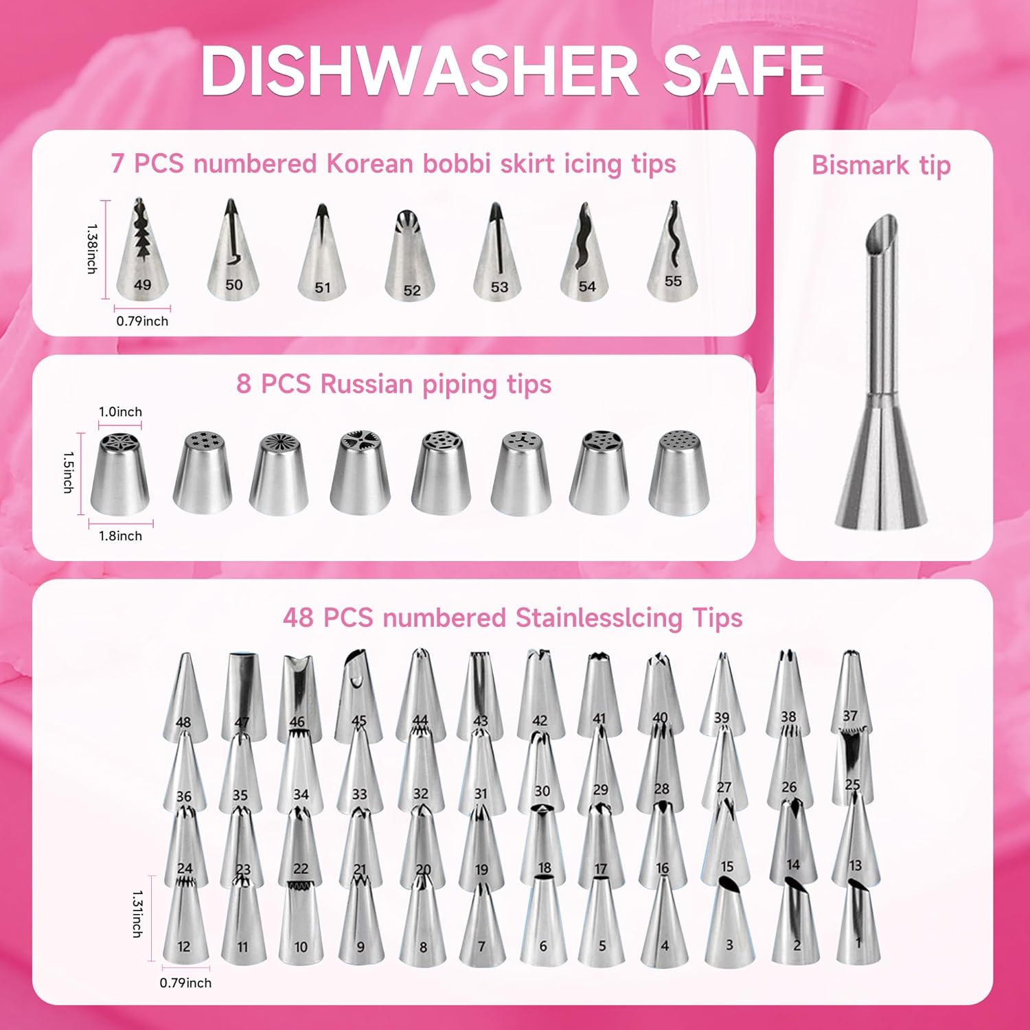 Cake Decorating Kit,137pcs Cake Decorating Supplies with Cake Turntable for Decorating,Pastry Piping Bag,Russian Piping Tips Baking Tools, Cake Baking Supplies for Beginners(Pink)