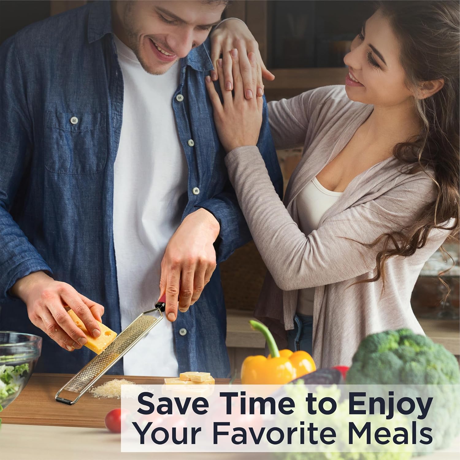 - ✅SAVE SPACE IN THE KITCHEN AND DRAWER - Replace your bulky, unsafe, and hard-to-clean box grater, cheese grater electric, cheese grater with container or heavy electric food processor with a single Deiss Classic Zester Grater & Food Shredder. The metal parmesan cheese grater teeth won't clog up the way other graters for kitchen do, so it's a snap to clean. Just pass your cheese grader under running water.
