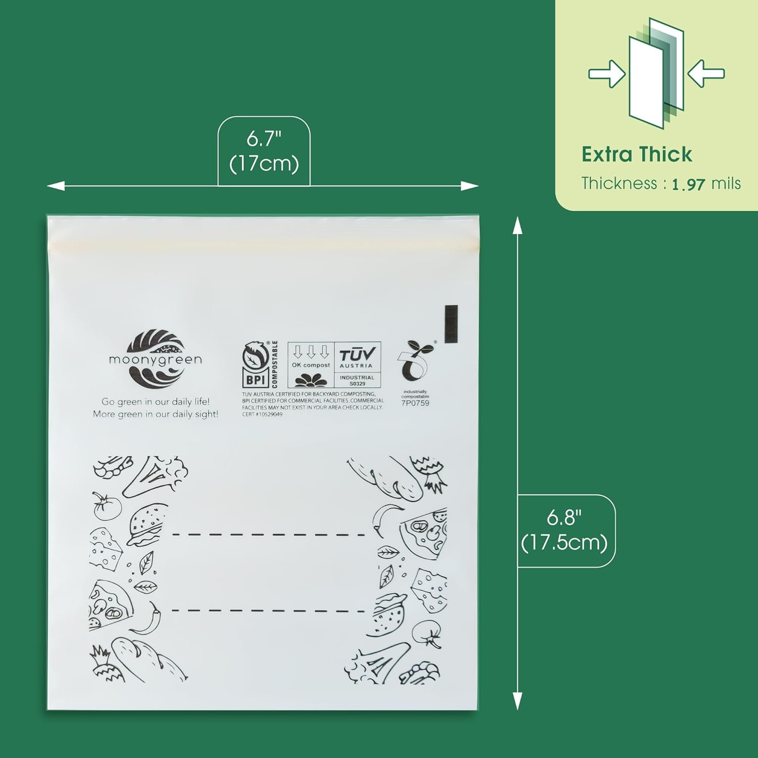 - 🌱 Moonygreen Resealable Sandwich bags have acquired the highest-rated ASTM D6400, European standard EN 13432 and BPI certified, proving that the bags are compostable with industrial facilities.
