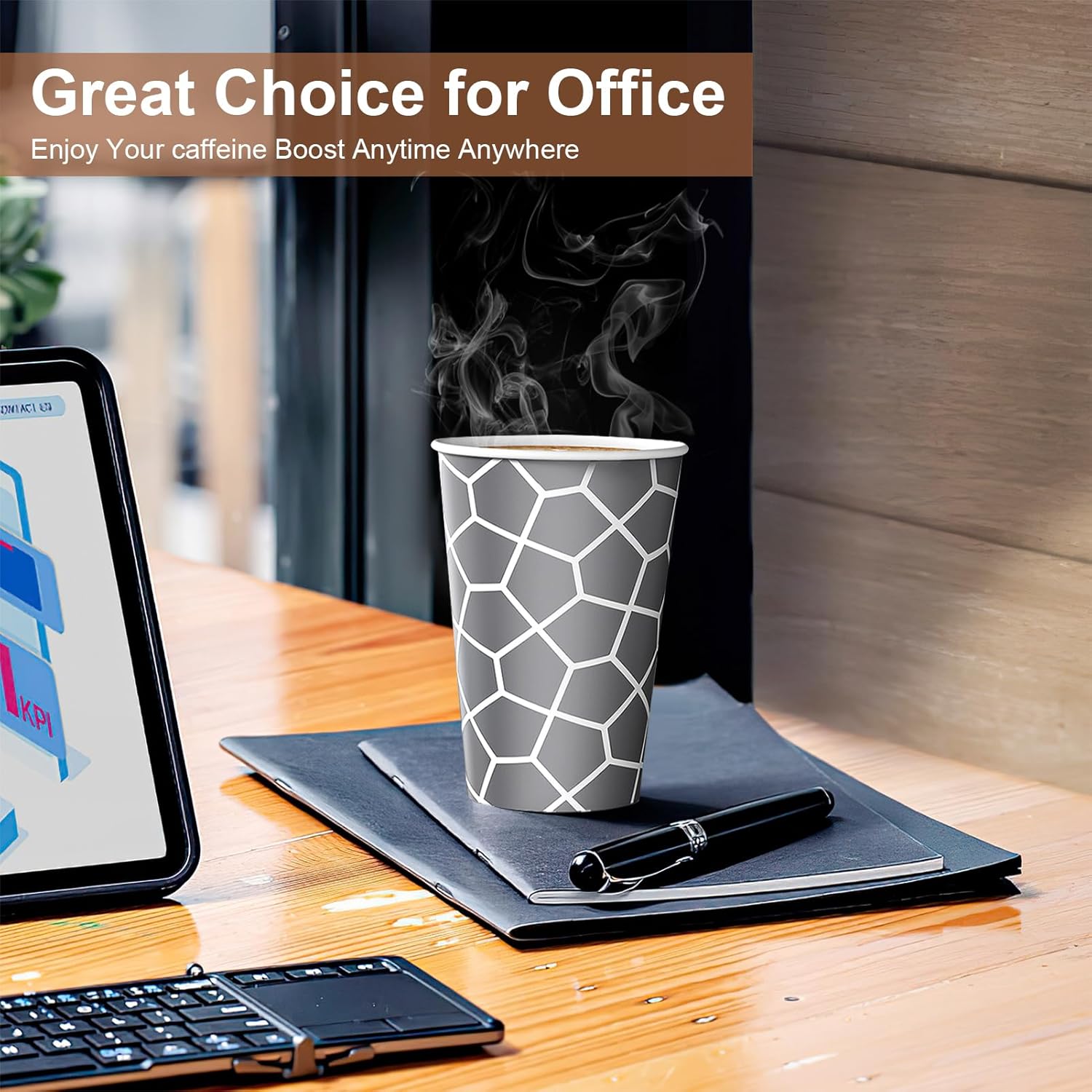 - Unique Style: These 12 oz coffee paper cups with two irregular polygonal pattern memorable paper cup design that will stand out in a busy conventional hall or a jam-packed event