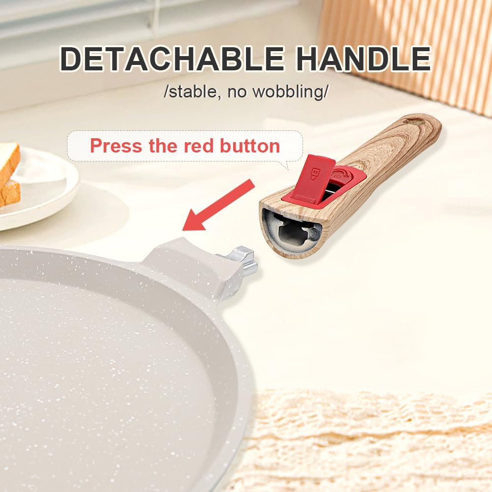 - [ANTI-SCALDING HANDLE] - The detachable handle is ergonomically designed and comfortable to hold, and it is not easy to conduct heat and burn your hands when using the crepe pan.