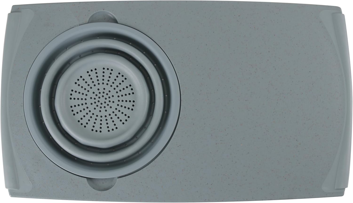 Dexas Over the Sink PolyFiber Flax Cutting Board with Collapsible Colander Strainer, 11.5 x 20", Smoke Blue