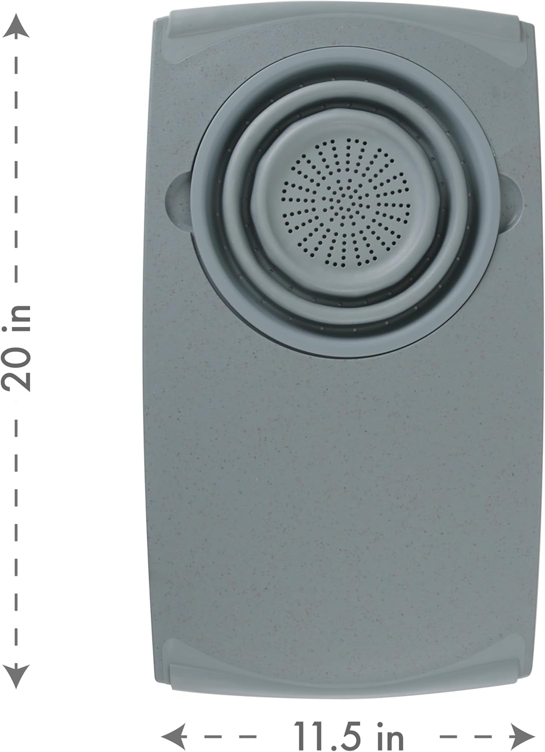 - OPTIMAL SIZE: With a cutting board that measures 11.5" x 20" and a generous 2-1/2 quart strainer capacity, this versatile Over the Sink Cutting Board is designed to handle a variety of tasks while fitting seamlessly into your kitchen.