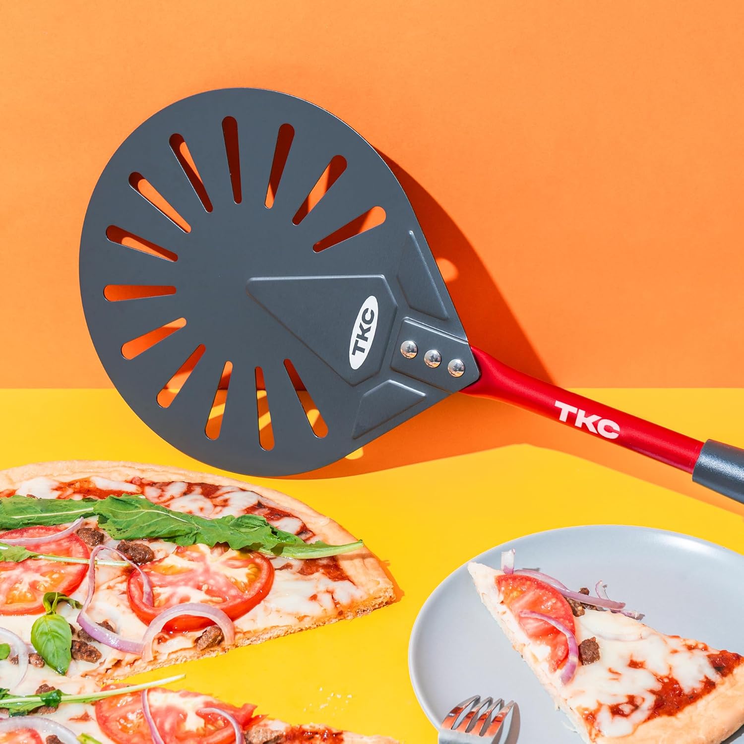 - TKC Brand Excellence: Introducing the TKC Pizza Turning Peel - a hallmark of precision and quality in pizza-making. Our 9-inch wide peel, extendable from 27 to 41 inches, epitomizes the expertise of kitchen chefs. Designed by culinary experts, this metal pizza peel, part of the TKC collection, ensures seamless handling in wood-fired ovens, making it an essential tool for pizza enthusiasts and professionals alike.