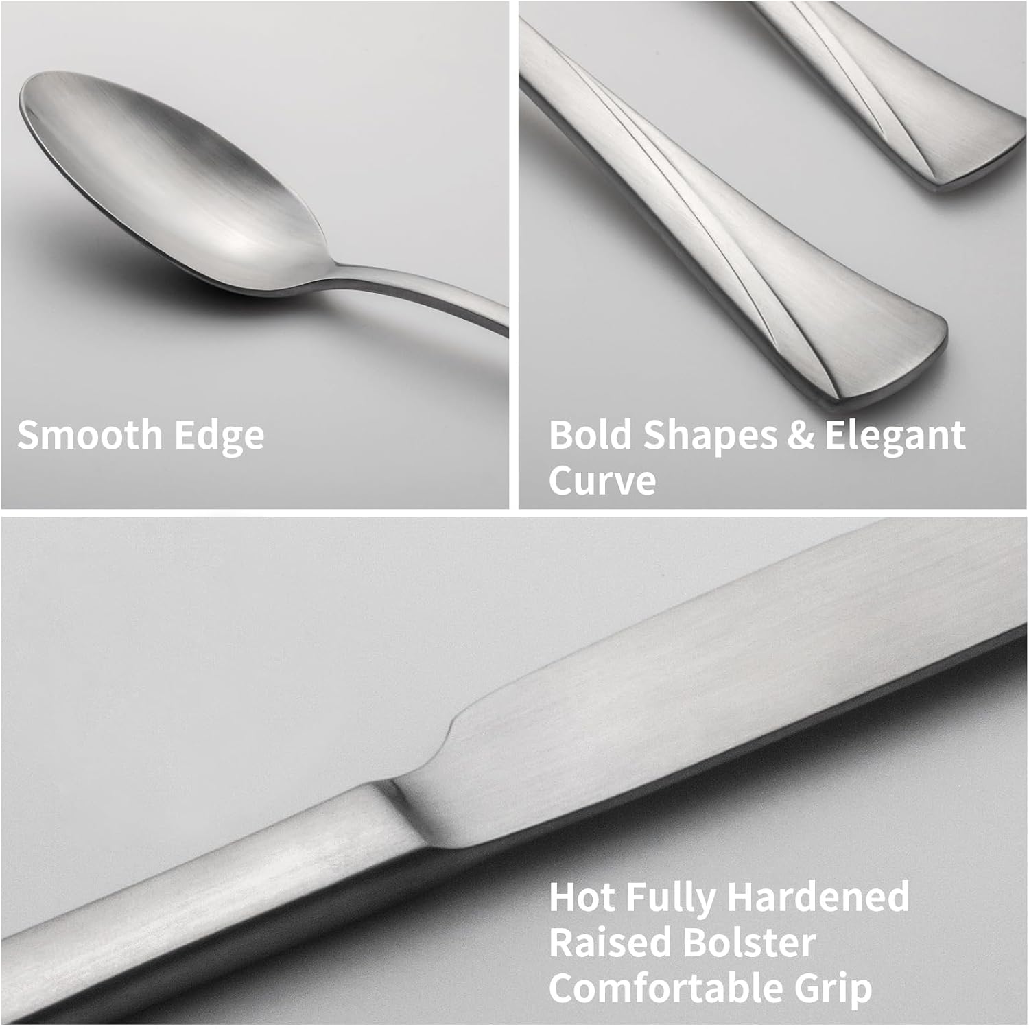 Alata Alice 40-Piece Silverware Set Stainless Steel Flatware Set,Service for 8,Matte Satin Polished Cutlery Set,Dishwasher Safe