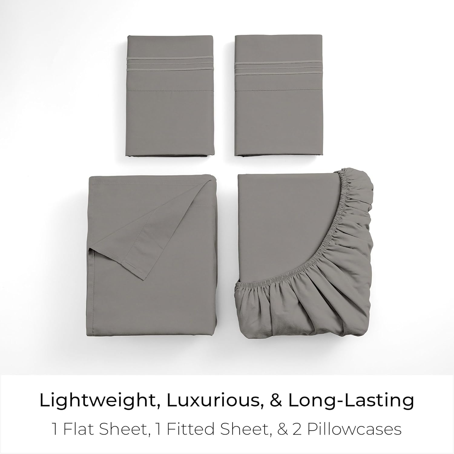 - Complete 4-Piece California King Bedding Set - Includes 1 Fitted Sheet (72"x84"x16"), 1 Flat Sheet (102"x108"), & 2 Pillowcases (20"x40") - all crafted from double-brushed microfiber for an ultra-soft feel. Temperature-regulating to keep you cozy in winter and cool in summer.