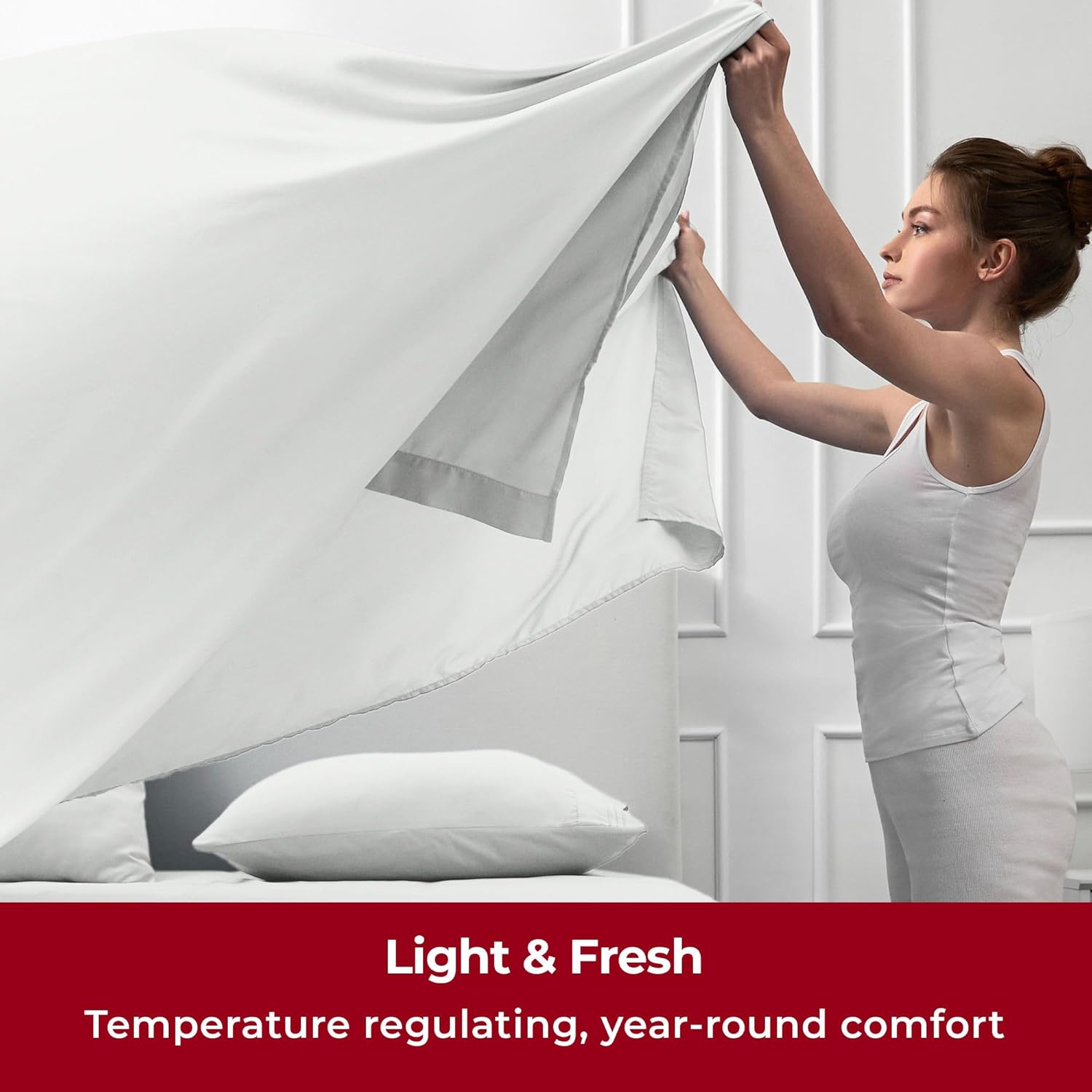 - Lightweight Luxury for Year-Round Comfort - Designed to be airy and ultra-light, our sheets offer effortless comfort in every season. Their thin, breathable construction enhances airflow, wicks moisture, and dries quickly. Despite their lightweight feel, these sheets are exceptionally strong and more durable than cotton, resisting stains, tears, and wear from frequent washing. Perfect for busy households with kids or pets.