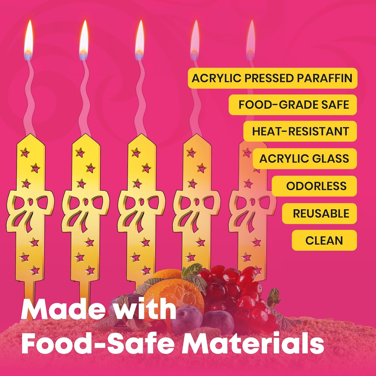 Set of 5 Reusable Gold Romantic Cake Candle - Luxury Cake Topper Candle for Birthdays, Weddings & Anniversaries - Reusable Food Safe Acrylic, Shiny Mirror Finish - Happy Birthday Cake Topper Decor