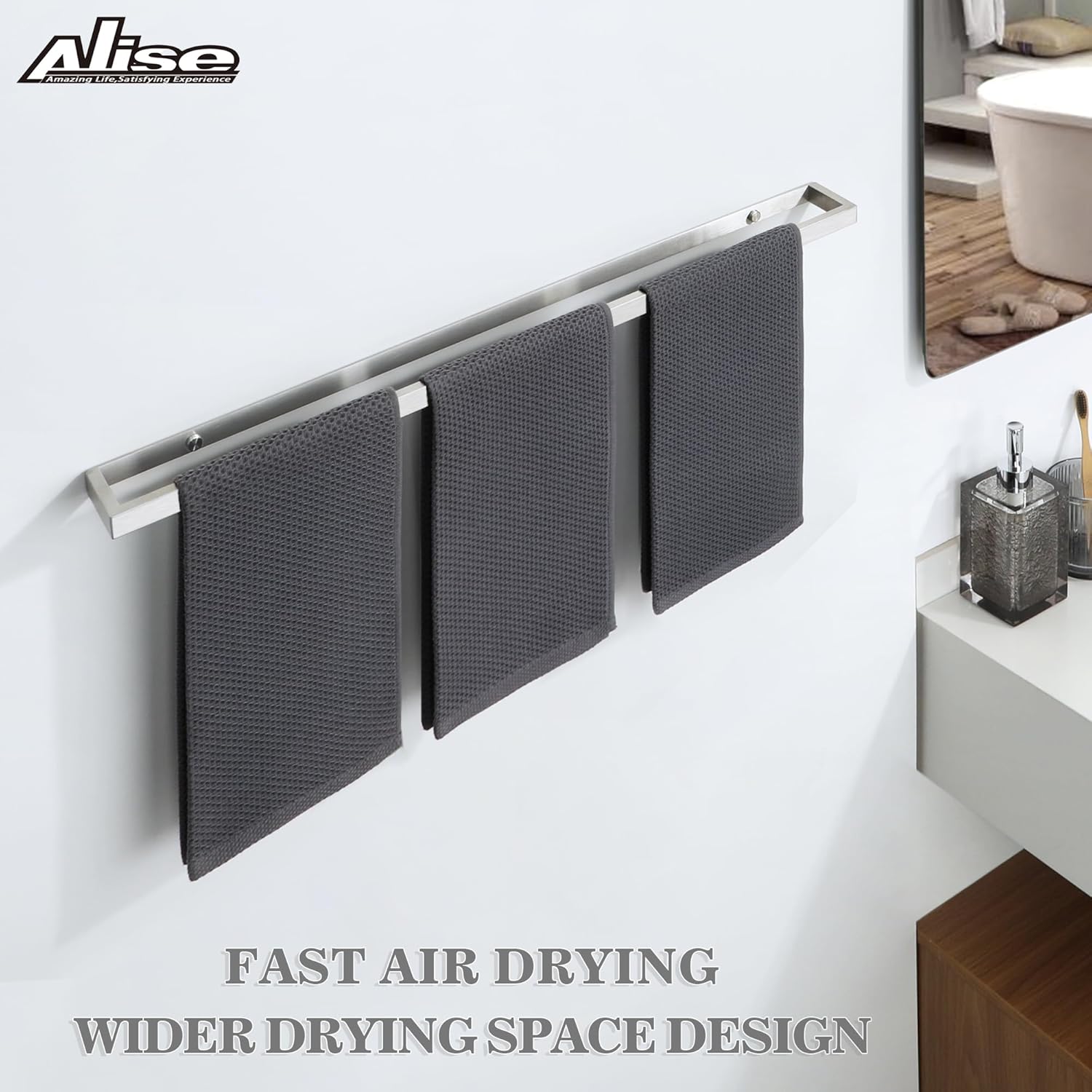 Alise Bath Towel Bar,Wall Mount Towel Holder Towel Rack Towel Hanger for Bathroom Lavatory,28 Inch SUS304 Stainless Steel Towel Rail,Brushed Finish GJF070-LS