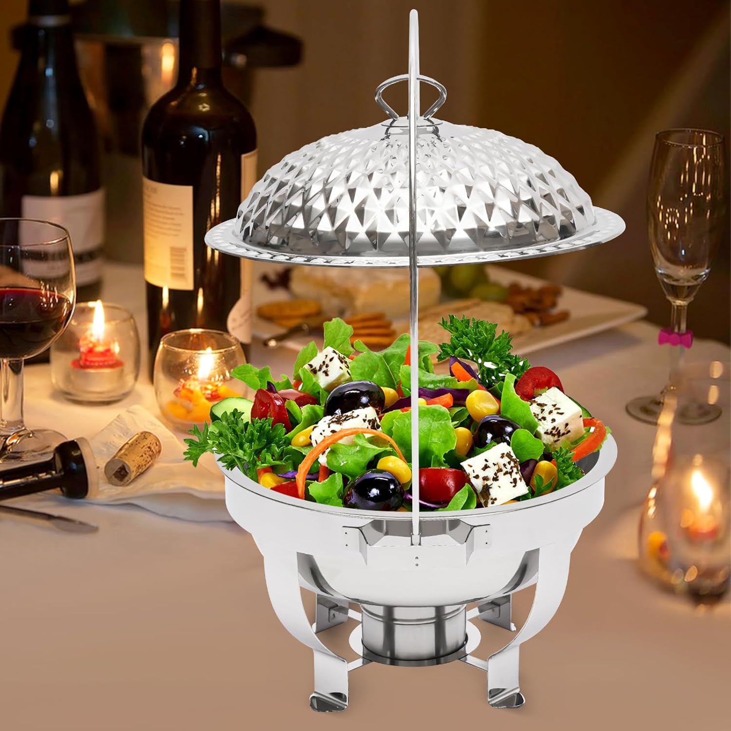 Chafing Dish Buffet Set Silver Accent, 4.5L Round Stainless Steel Chafer, Upgraded Buffet Servers and Warmers Set Warming Tray for Wedding, Parties, Banquet and Events (Silver)