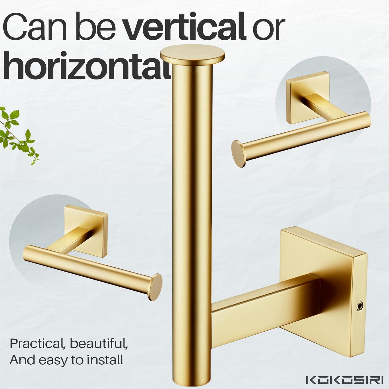 KOKOSIRI Toilet Paper Holder Tissue Paper Dispenser for Bathroom Toilet Roll Holder Wall Mounted, Brushed Gold Stainless Steel B2008BG