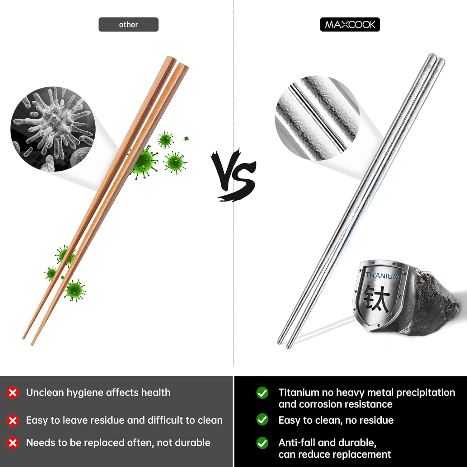 - 【Healthy Titanium Chopsticks】Titanium has no heavy metal precipitation, good compatibility with the human body, acid and alkali corrosion resistance, non-rusting, non-stringing properties, healthy titanium chopsticks are the ideal material for kitchen utensils