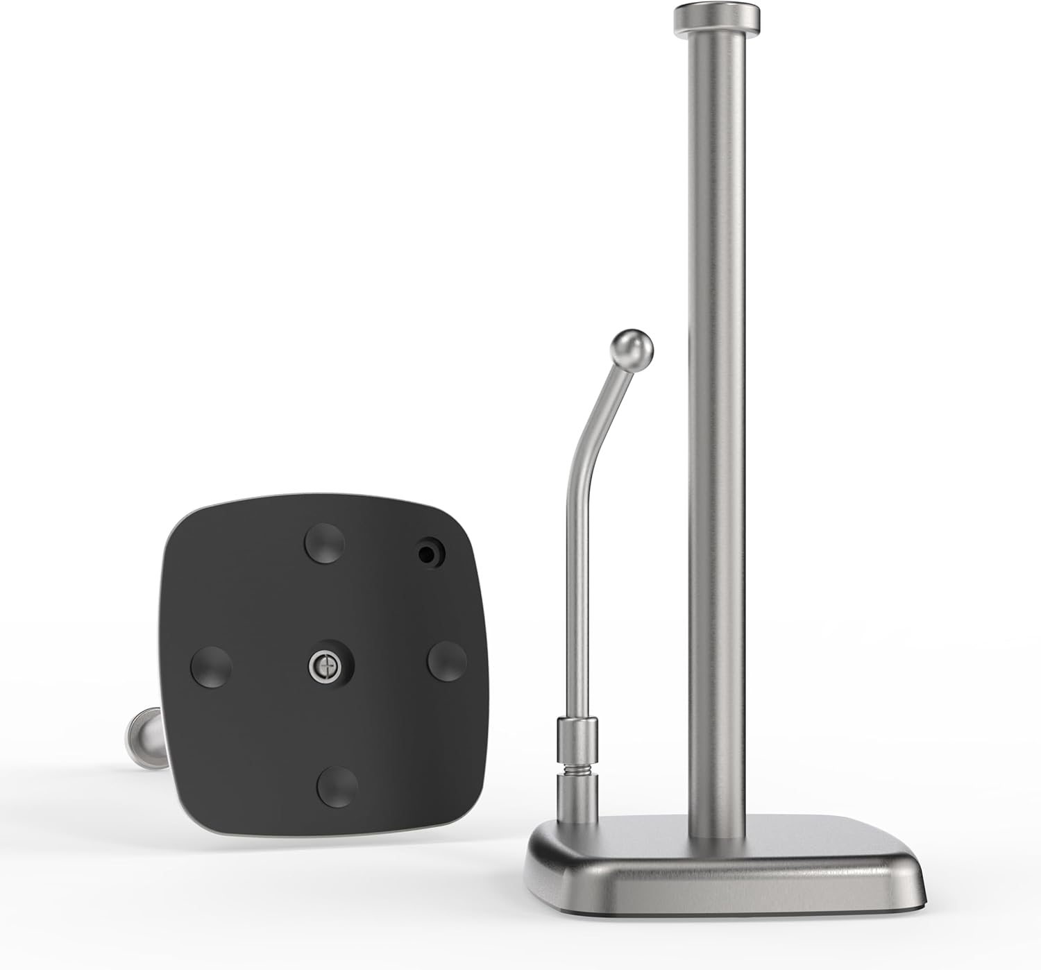 Paper Towel Holder Countertop, Paper Towel Dispenser Standing Weighted Base Non-Slip, Spring Arm Fit Most Size Paper Roll, Stainless Steel Paper Towel for Home Kitchen Tabletop, Sliver