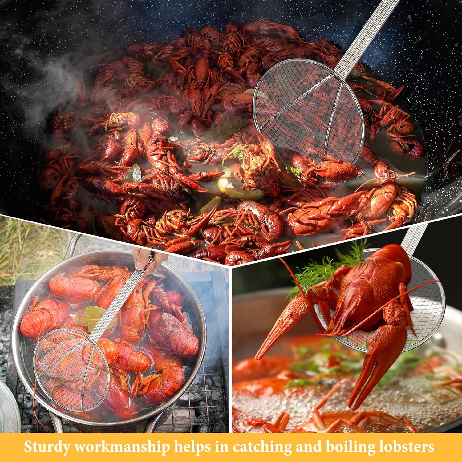 - Ideal Size for Various Uses: the fryer skimmer measures about 6 inches/ 15 cm in diameter, about 10 inches/ 26 cm in handle length and about 16 inches/ 41 cm in whole length, offers versatility in use and allowing users to reach into deep pots and fryers without the risk of burns; This makes it a handy tool for many cooking tasks
