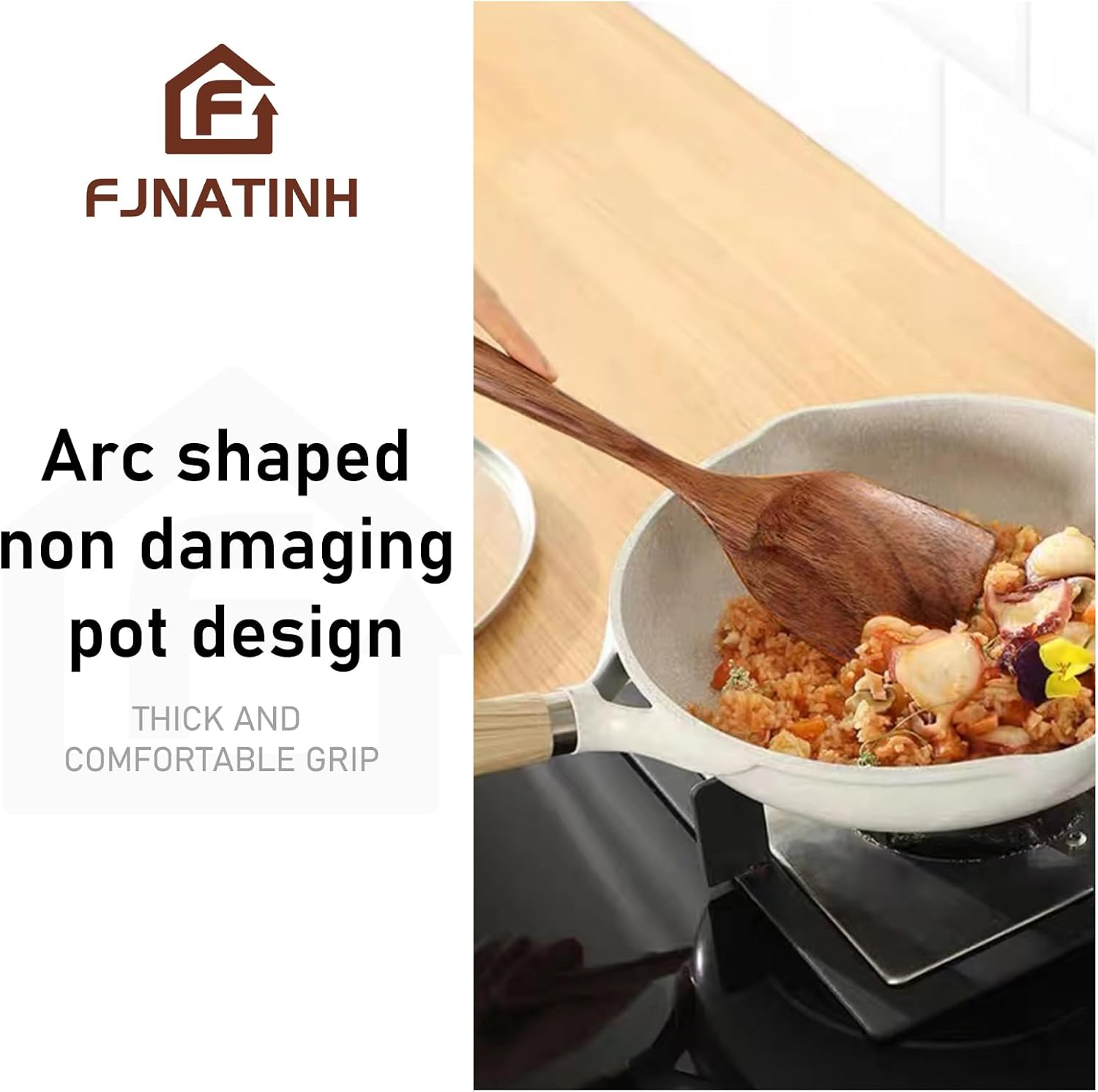 FJNATINH 3-Piece Teak Wooden Wok Spatula Set, Wooden Kitchen Utensil Set, 100% Natural Teak Wood Cooking Utensils