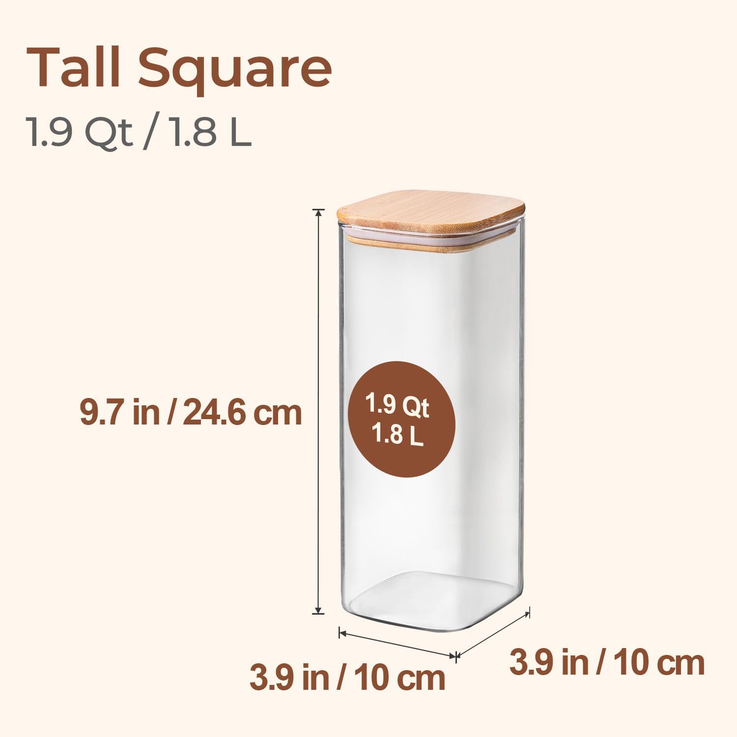 - Versatile Glass Canisters: Experience the versatility of our 1.9Qt Large glass pantry storage containers; ideal for storing cereals, cookie, snacks, nuts, oat, or even can use these glass jars as candy jar, bath salt jar, spice jar, sugar coffee containers