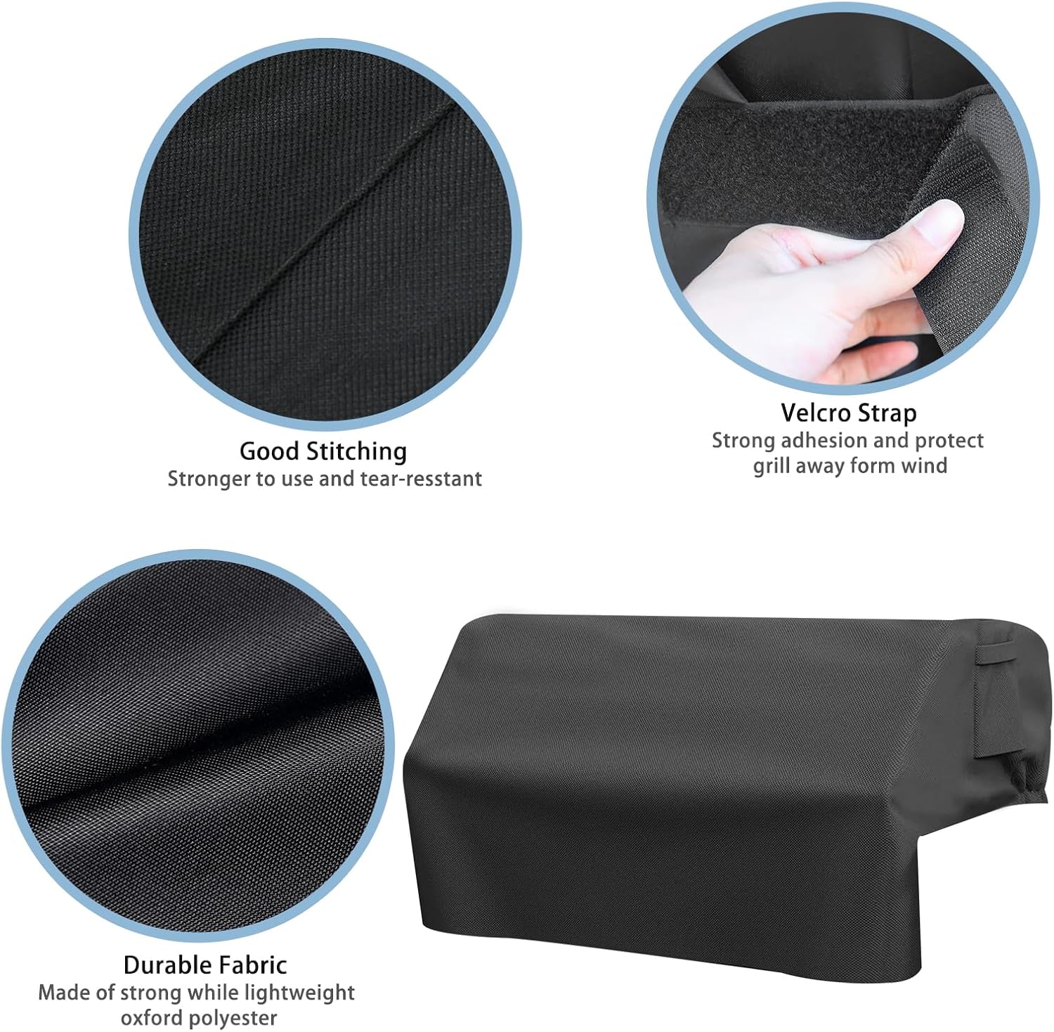 - Function: Upgrade the stitching process keep your grill dry on rainy days. It can withstand heavy winds and won't crack in cold weather. 2 click-close straps are added at the bottom to secure the cover in place even in strong winds.The cover is very durable and easy to put on and off because its thick.