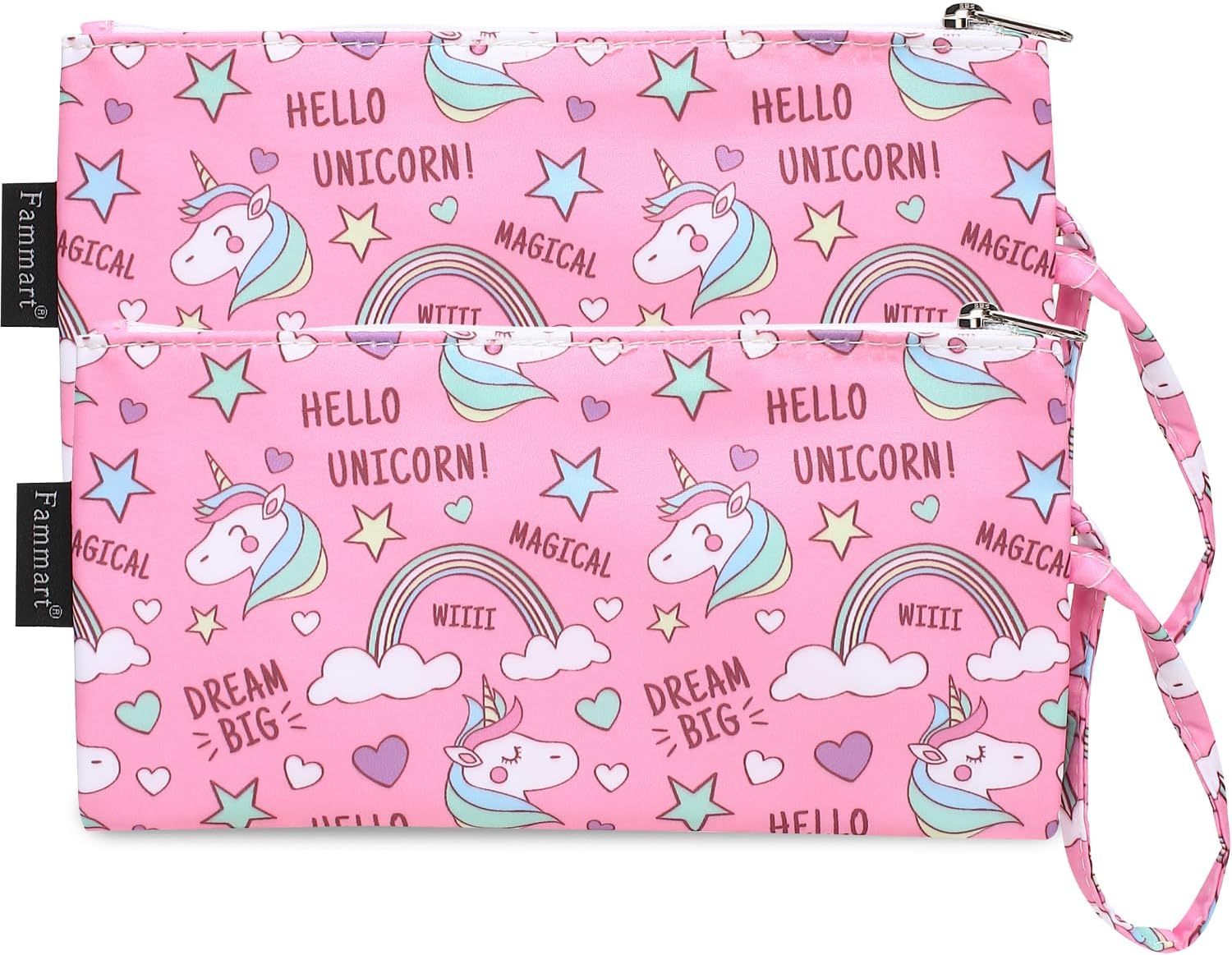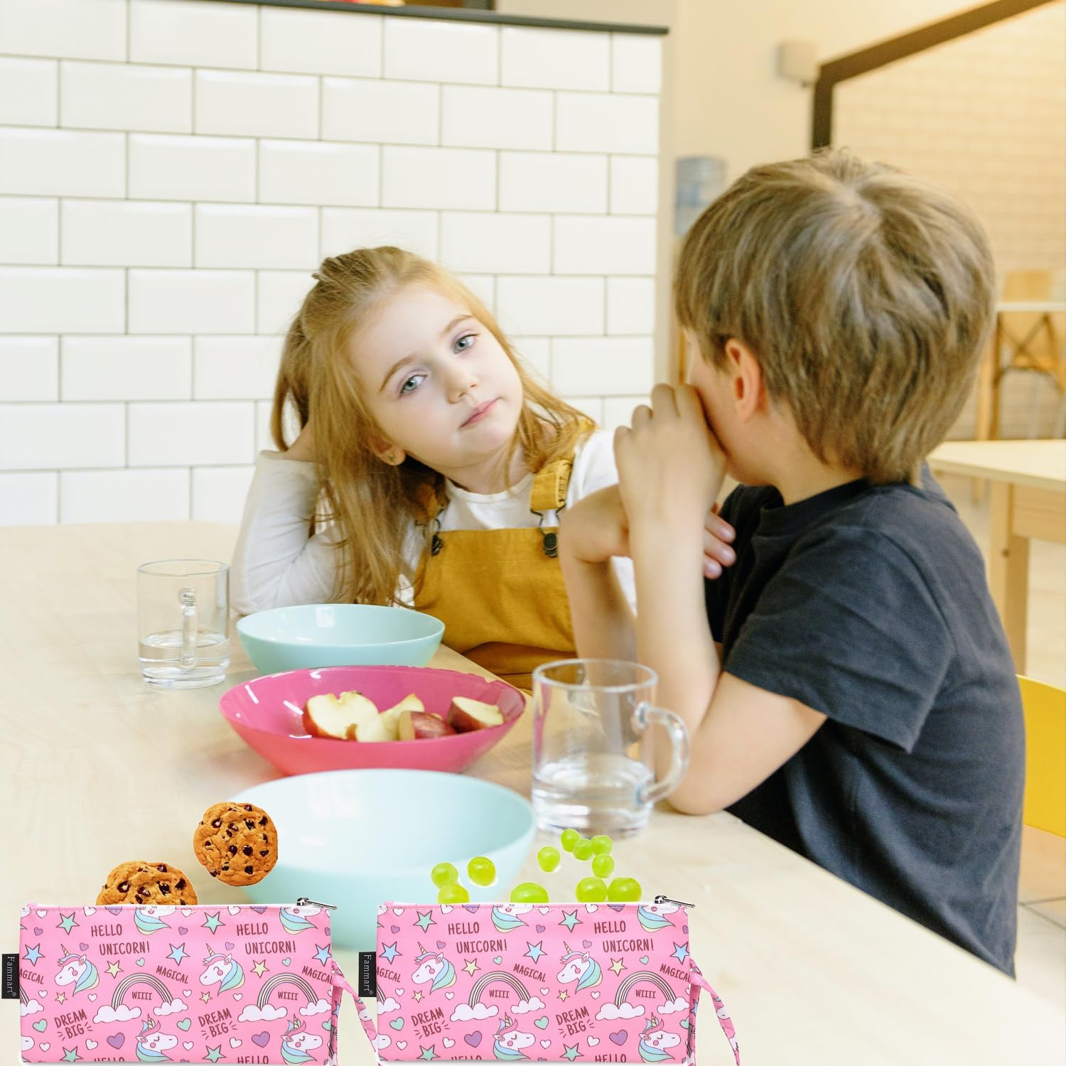 Reusable Sandwich Bag/Snack Bag for Kids & Adults, Dual Layer Lunch Bag with Handle, Washable, Food Safe, BPA Free (2-Pack, Rainbow Unicorn)