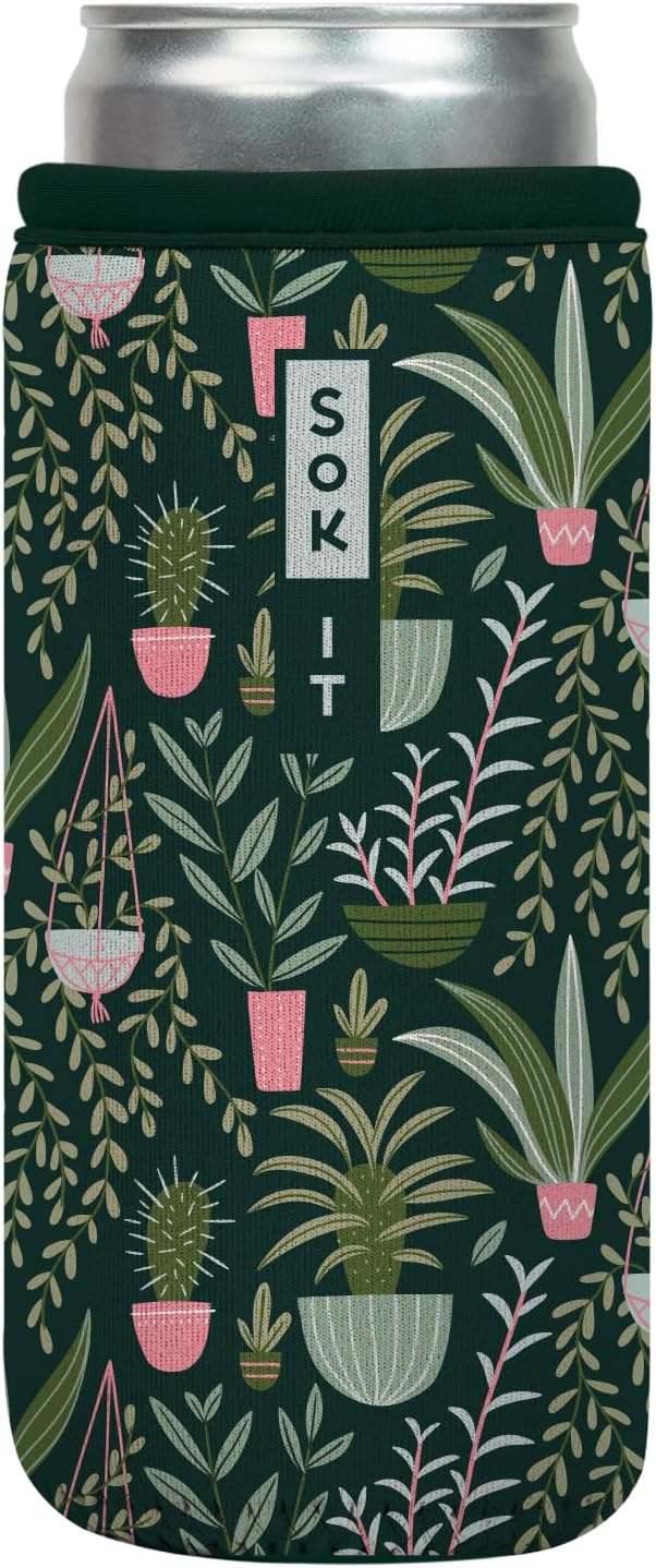 Sok It CanSok Sleeve for Beer & Soda Insulated Neoprene Cover (Green Living, 12oz Slim Can Sleeve)